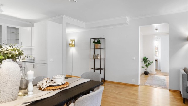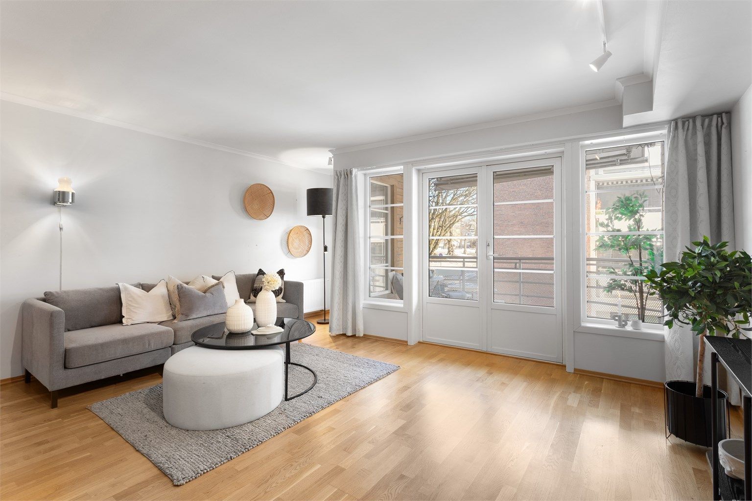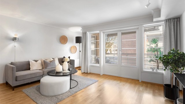 Pen 3-roms hjørneleilighet i 3. etasje. God og sentral beliggenhet på Bragernes. Garasjeplass. Balkong. Heisadkomst.