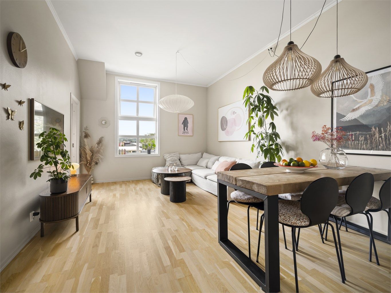 Luftig 3-roms med særpreg og over 3 meter takhøyde. Utsikt og gode solforhold på balkongen. Carport med lader. Heis.