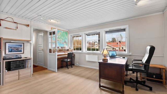 Peisestuen er opprinnelig byggemeldt som "hobbyrom/sport" jf. byggetegninger og er ikke godkjent til varig opphold. Se pkt. ferdigattest.