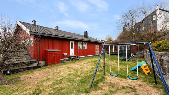 Pen og velholdt enebolig i blindvei med trivelige og solrike utearealer. Meget barnevennlig område. Jar skolekrets!