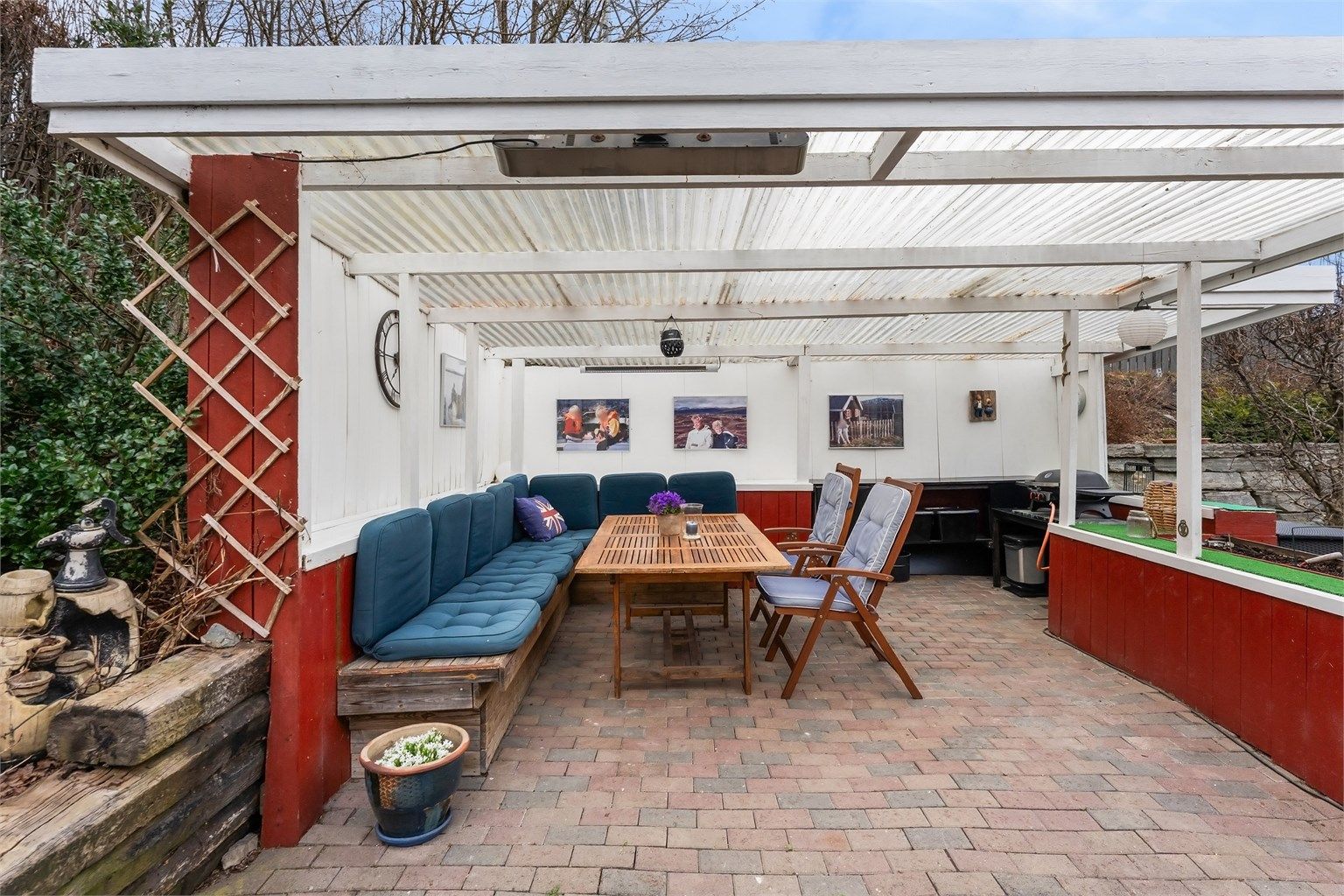 Boligen har en flott planløsning over to plan og inneholder entré, gang, toalettrom, dusjrom, badstue, to soverom, peisestue og fire boder i underetasjen, og gang, bad, toalettrom, to soverom, vaskerom, kjøkken, stue og spisestue i 1. etasjen. Utvendig byr boligen på nydelige uteplasser med en romslig veranda, platting med pergola og en hyggelig hage klar for lek og moro! Det er plass til flere biler på tomten. Det er montert elbil-lader på husvegg.