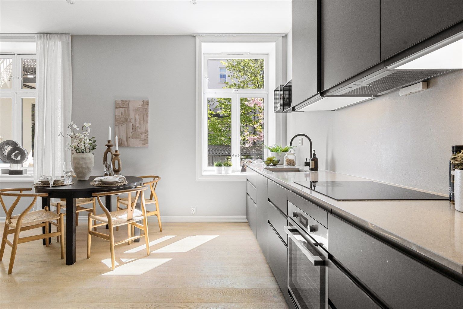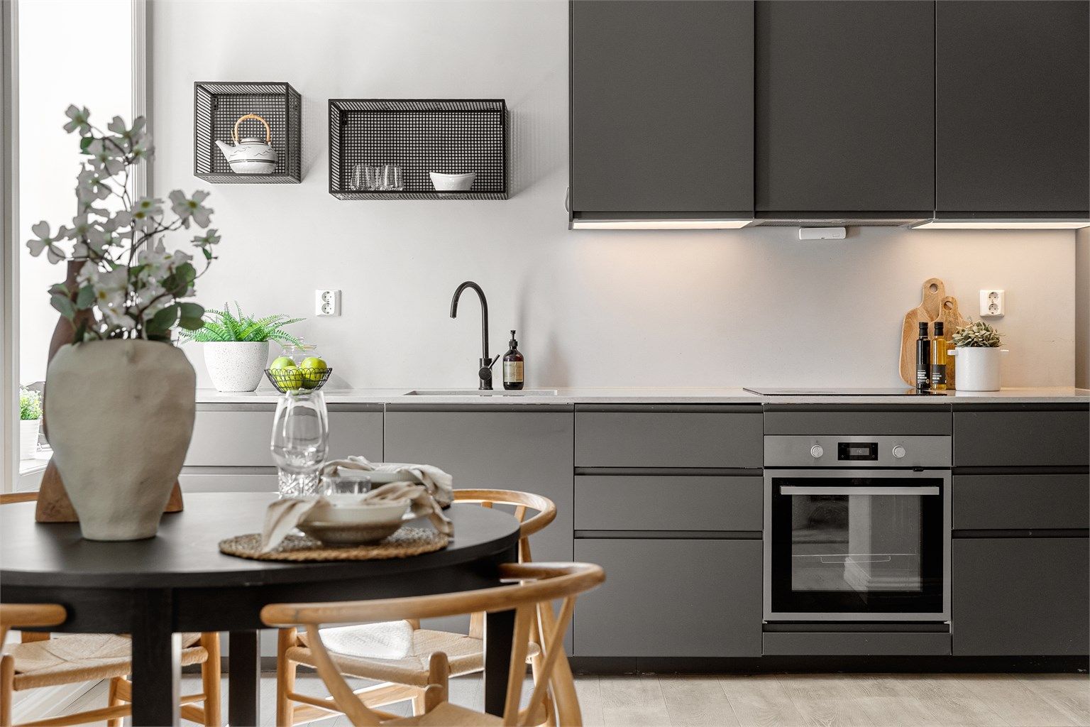 Åpen kjøkkenløsning med integrerte hvitevarer