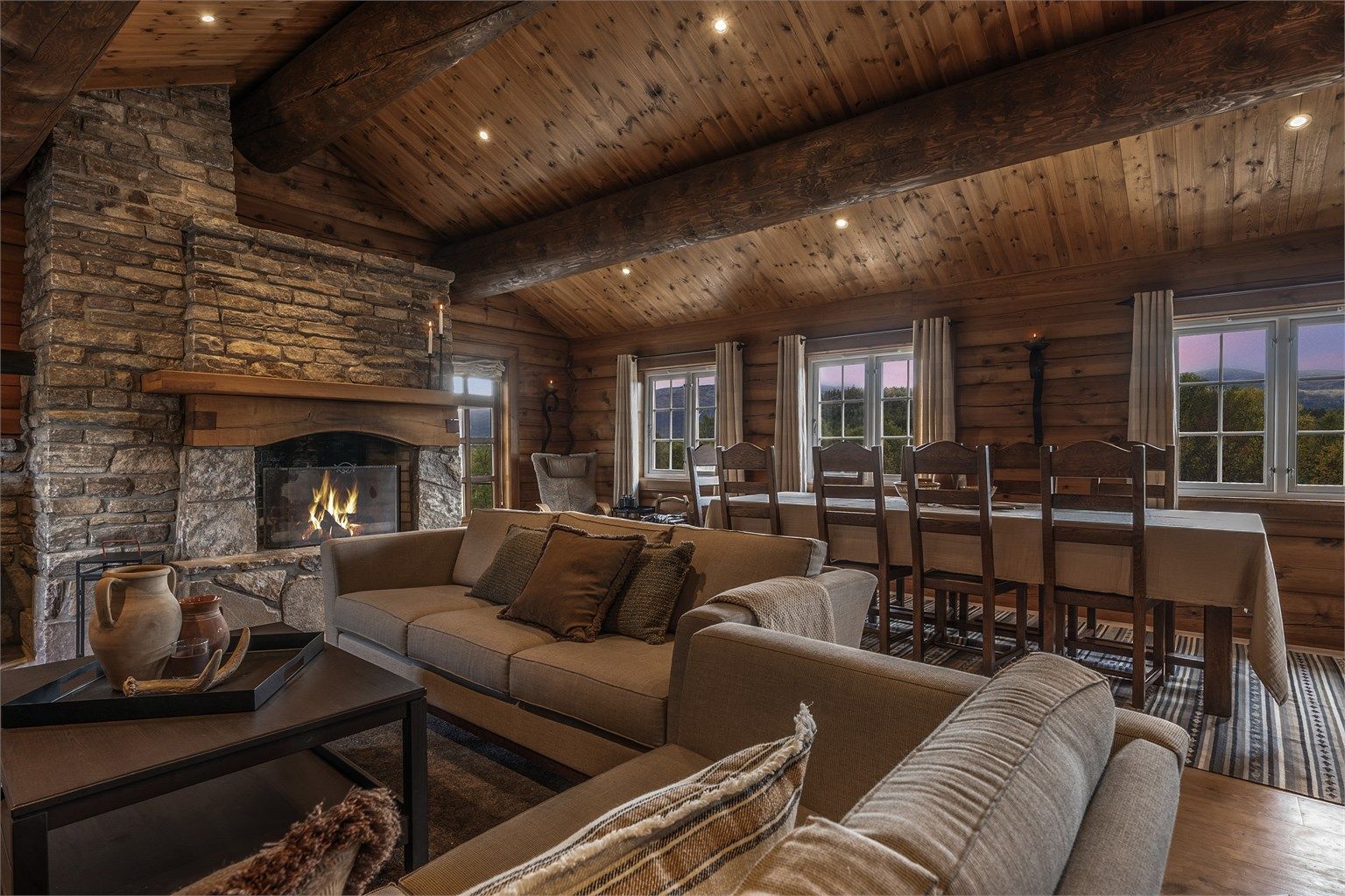 Hytta fremstår som lun og trivelig med god planløsning og kvalitetsbevisste materialvalg.
