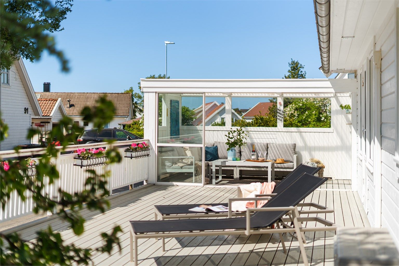 - Solrik terrasse med utgang fra stuen