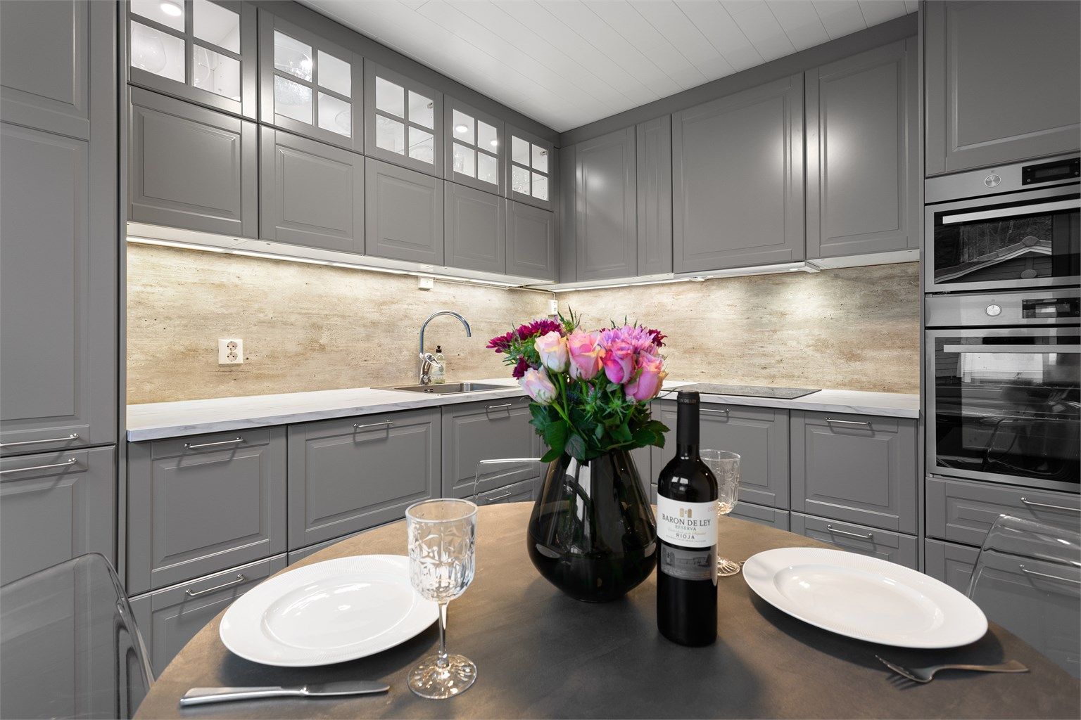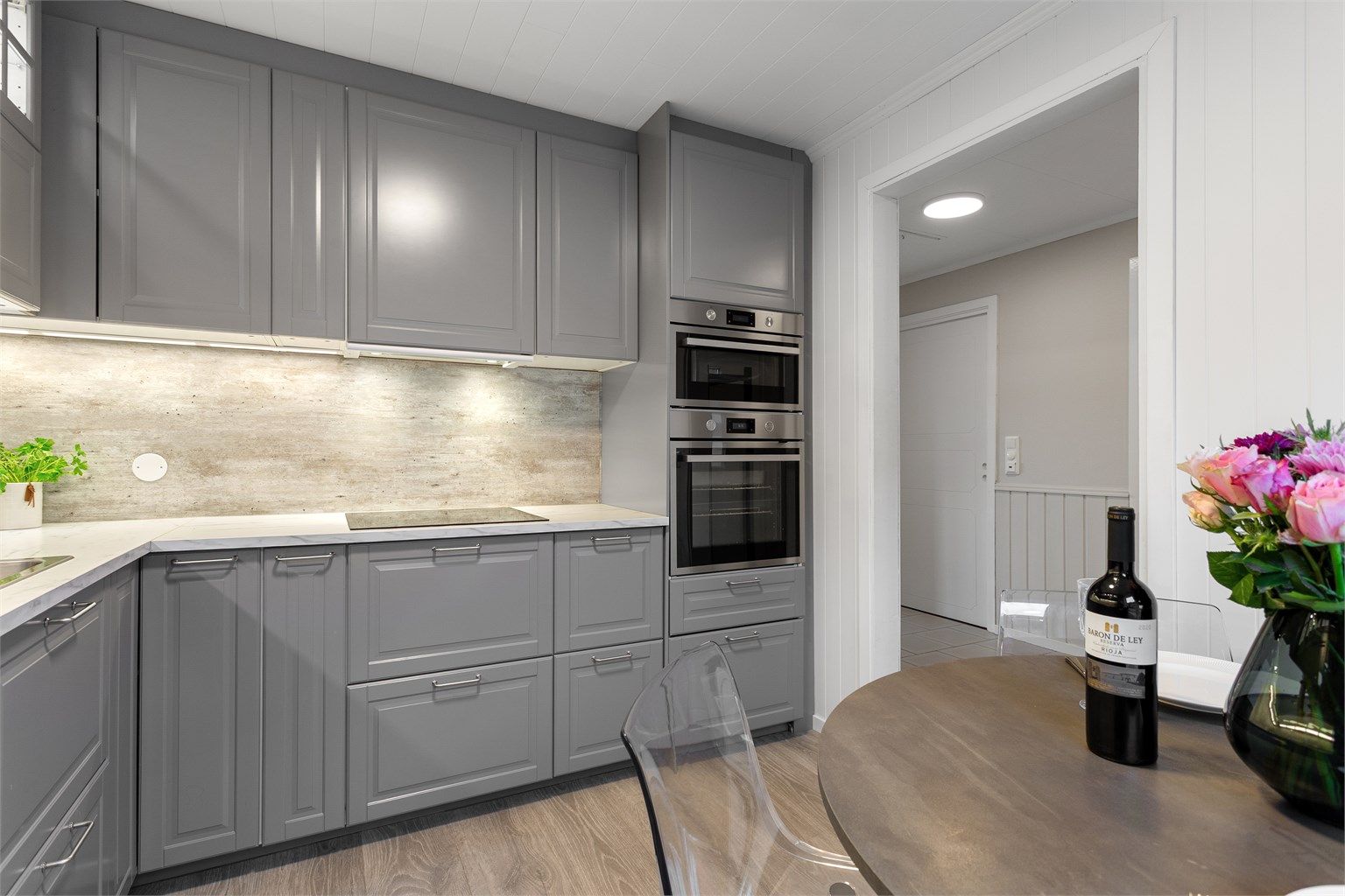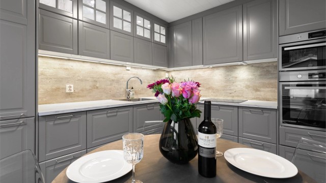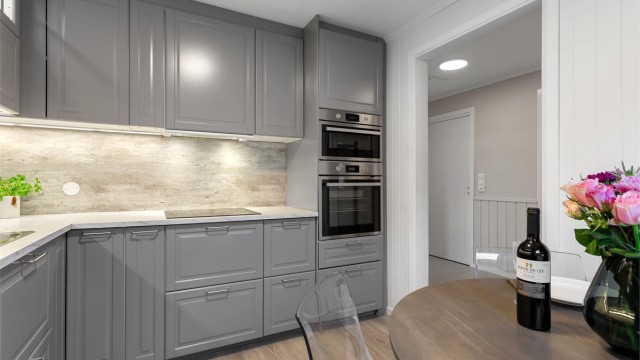 Oppvaskmaskin, kjøleskap, koketopp, stekeovn og microovn vil medfølge eiendommen.