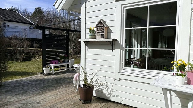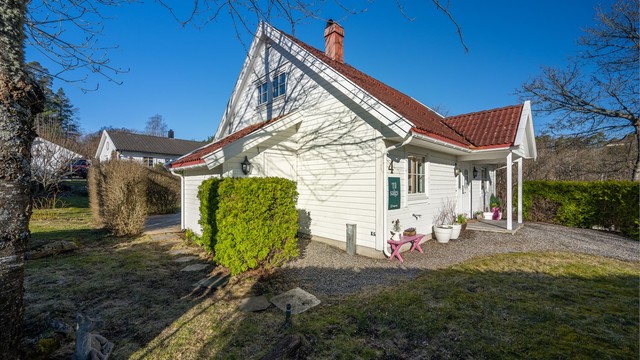 Velholdt, delikat og familievennlig enebolig med flott hage og solrik terrasse