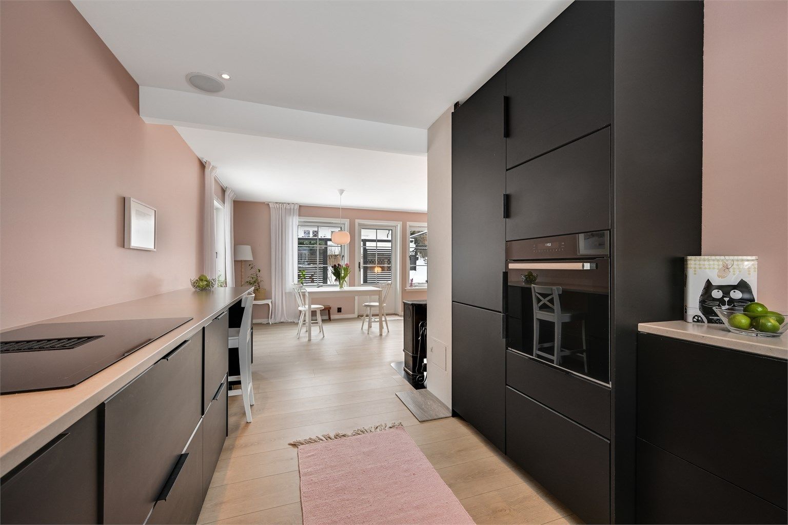 Innvendig er boligen nylig oppgradert med tidsriktige farger og materialvalg, som skaper en moderne og innbydende stemning.
