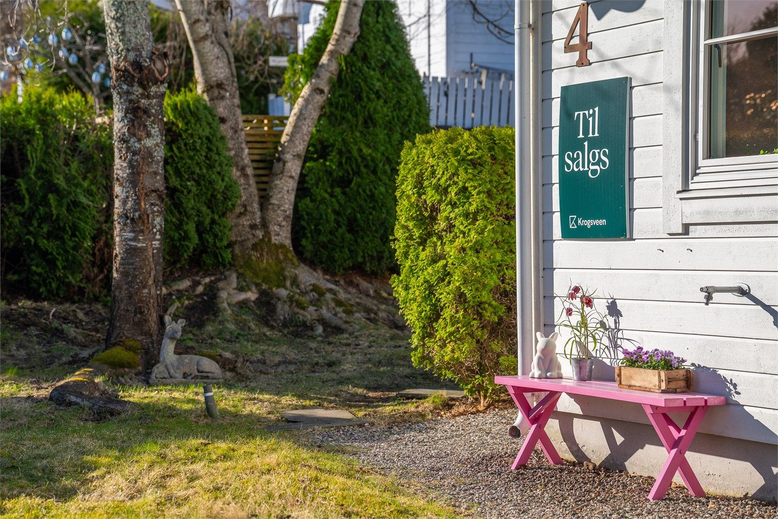 Eiendommen skiller seg ut med en stor og velstelt hage, som gir god plass til både lek og avslapning. Det sydvestvendte terrassen har perfekte solforhold og en privat atmosfære som inviterer til hygge og gode stunder utendørs.