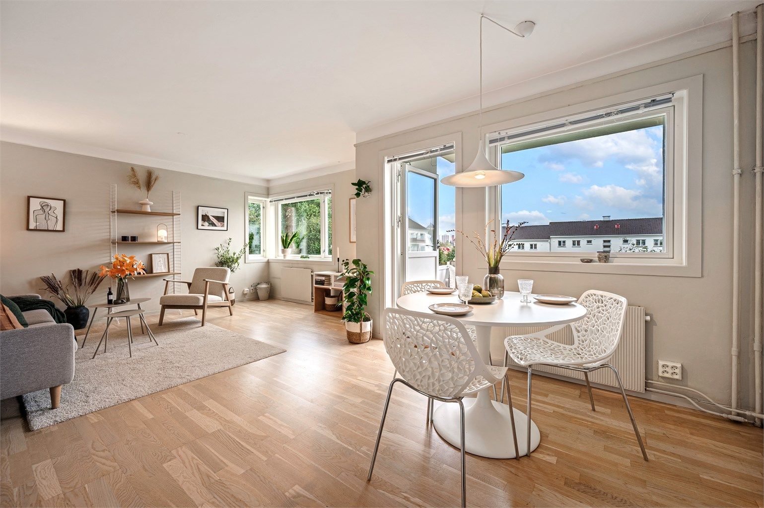 Flott, åpen og lys 3- roms leil. i 2.etg med solrik, vestvendt balkong og fin utsikt