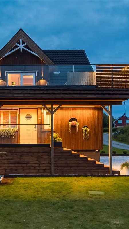Det foreligger ikke byggegodkjente tegninger i kommunen. Under restaurering av bolighus er alle vinduer og bordkledning byttet, etterisolert osv. Vinduer har samme plassering, men i sjøstue/stue og loft er det satt inn heve skyvedør. Det er bygd ett takoverbygg ved inngangsparti og etablert veranda på topp. Nytt inngangsparti ved ytterdør med tilhørende veranda i font av hus. Tiltak er ikke byggemeldt og det må evt. sendes inn søknad for tiltak.