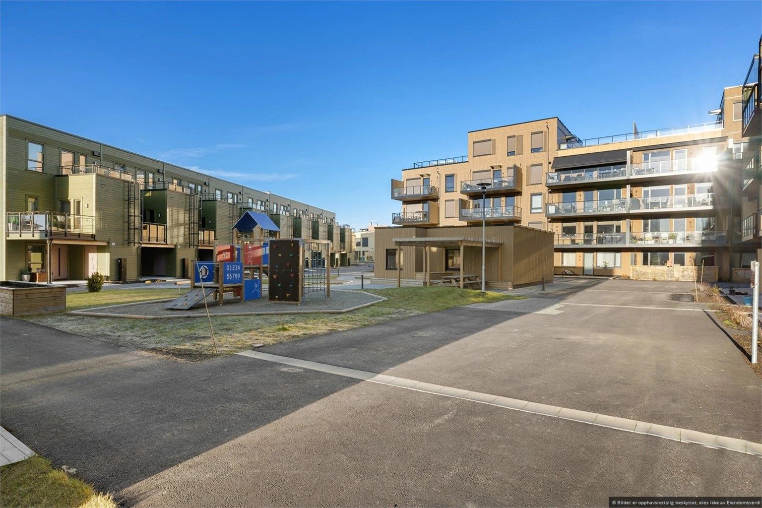 Dette er en moderne og arealeffektiv 3-roms leilighet fra 2023. Boligen ligger i første etasje og kjennetegnes av en gjennomgående god standard, vannbåren gulvvarme og en åpen, sosial planløsning. Fra stuen er det direkte utgang til en romslig og delvis overbygget markterrasse på 20 m², som gir en fin forlengelse av stuen.