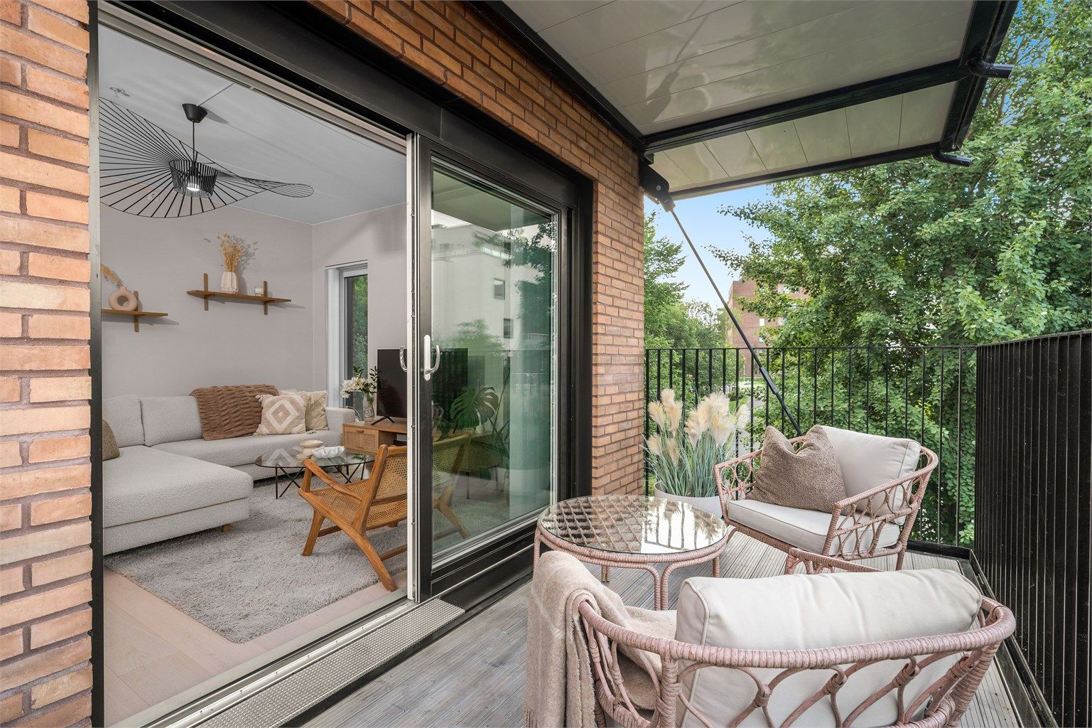 Leiligheten har to solrike uteplasser, én nordvestvendt balkong på ca. 10 kvm med utgang fra stuen, og én sørvestvendt balkong på ca. 5 kvm med adkomst fra soverommet – ideelt for å nyte solen hele dagen. I tillegg medfølger det en garasjeplass i et lukket, underliggende garasjeanlegg.