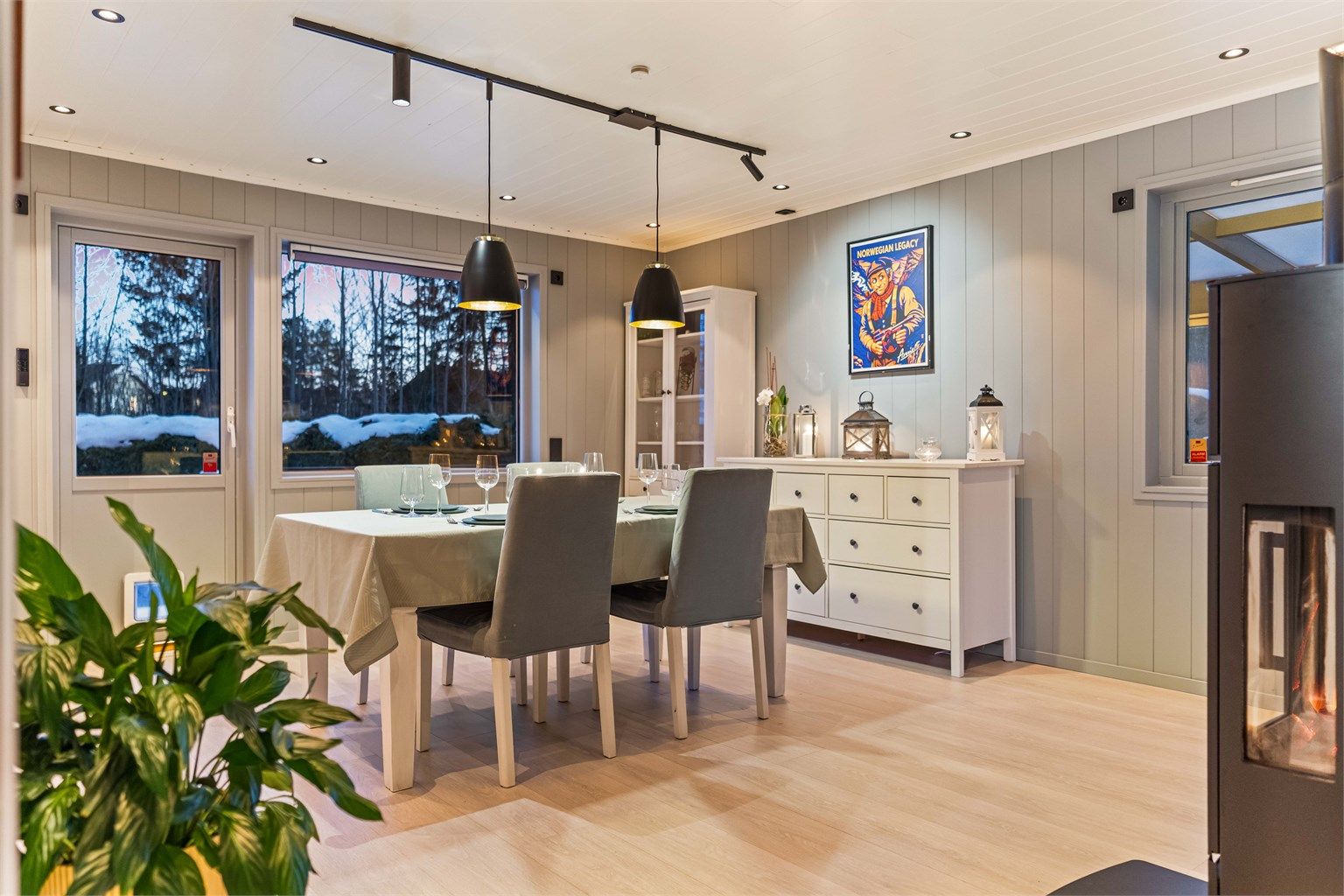 - Funksjonell planløsning med god flyt mellom kjøkken og stue.