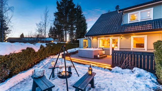 - Nylig malt fasade, vindskier, inngangsdør og utebod - lite behov for større utvendige tiltak