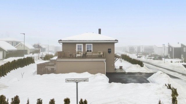 Velkommen til Harstadrøet 125! En flott enebolig på romslig hjørnetomt og god intern beliggenhet på Lyngåsen. Boligen ble bygd i 2016 og holder en gjennomgående god standard. Her får du en innholdsrik familiebolig med 2 stuer, 3 soverom, 2 bad, solrike uteplasser og god boltreplass for hele familien. Parkering i garasje og på asfaltert gårdsplass. Oppvarming med varmepumpe, vedfyring og varmekabler i hele 1. etasje samt bad.