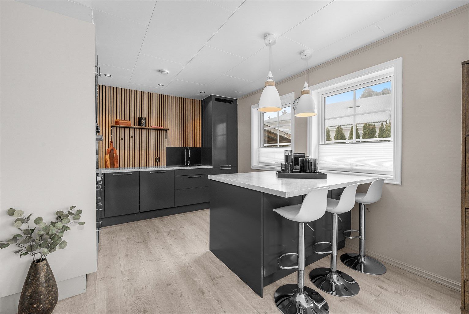 Innholdsrik enebolig på hjørnetomt med 3 sov, 2 stuer, 2 bad | Solrike uteplasser | Garasje og asfaltert gårdsplass