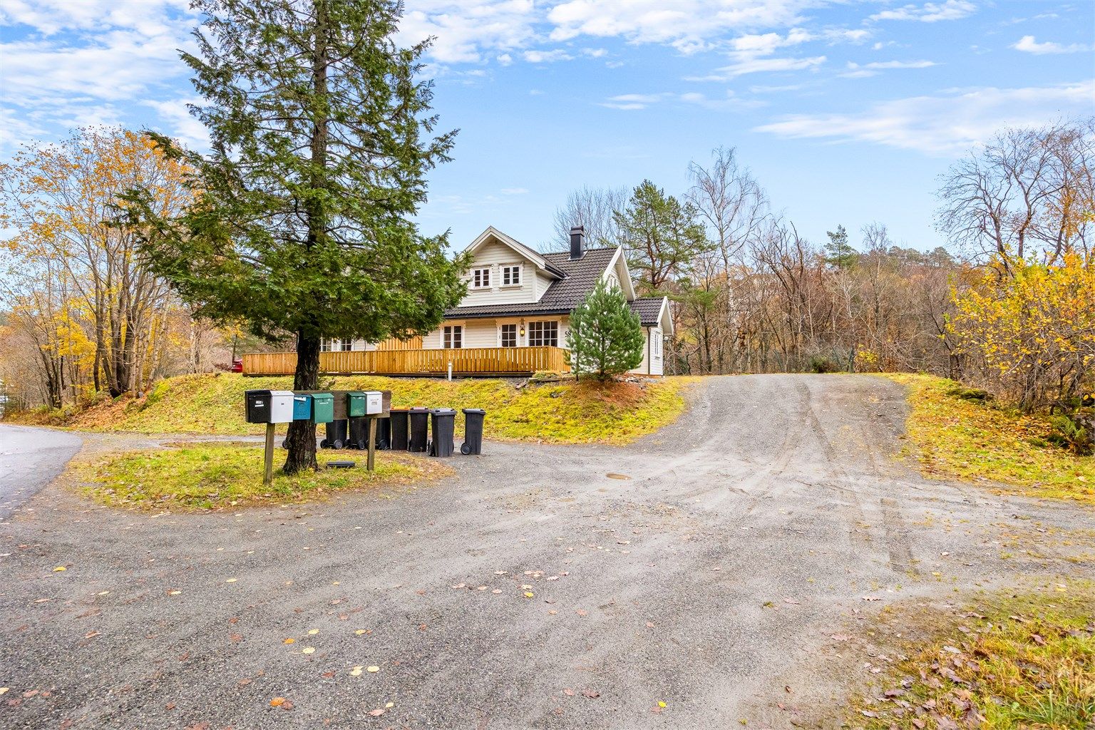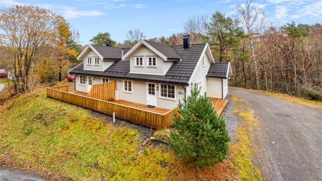 Det er planlagt 20 leiligheter på sørsiden av denne boligen. Veien i front vil etter planen bli hevet noe for en slakere bakke til nye leiligheter. Eiendommen ligger ca. 3 km. fra Arendal sentrum.