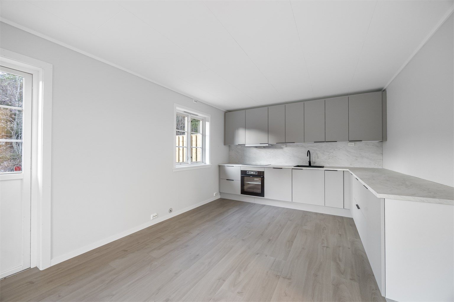 Følgende hvitevarer medfølger i handelen: Stekeovn, koketopp og oppvaskmaskin (nytt høst 2025).