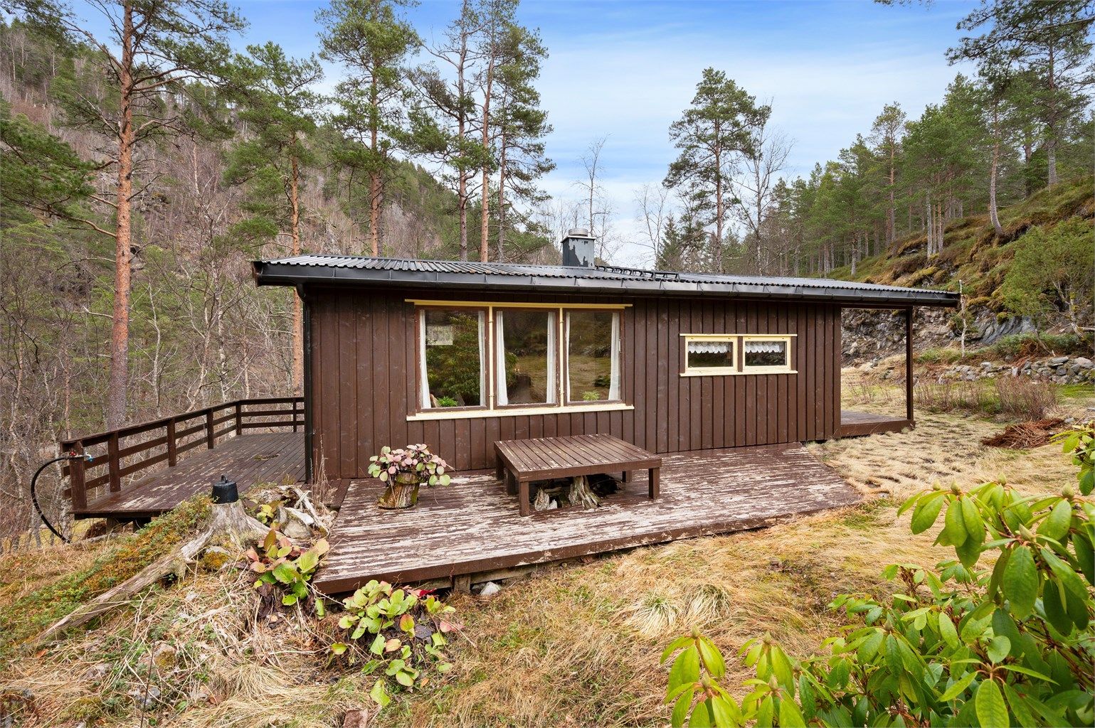 Den trivelige hytta ligger fint i terrenget på ei stor naturtomt ved fjorden. Tomta er delvis opparbeidet, og omkranset av naturlig vegetasjon er eiendommen skjermet for omgivelsene. Likevel er tomta både åpen og lys, med fine glimt mot fjorden, fjellet og det vakre fjordlandskapet.