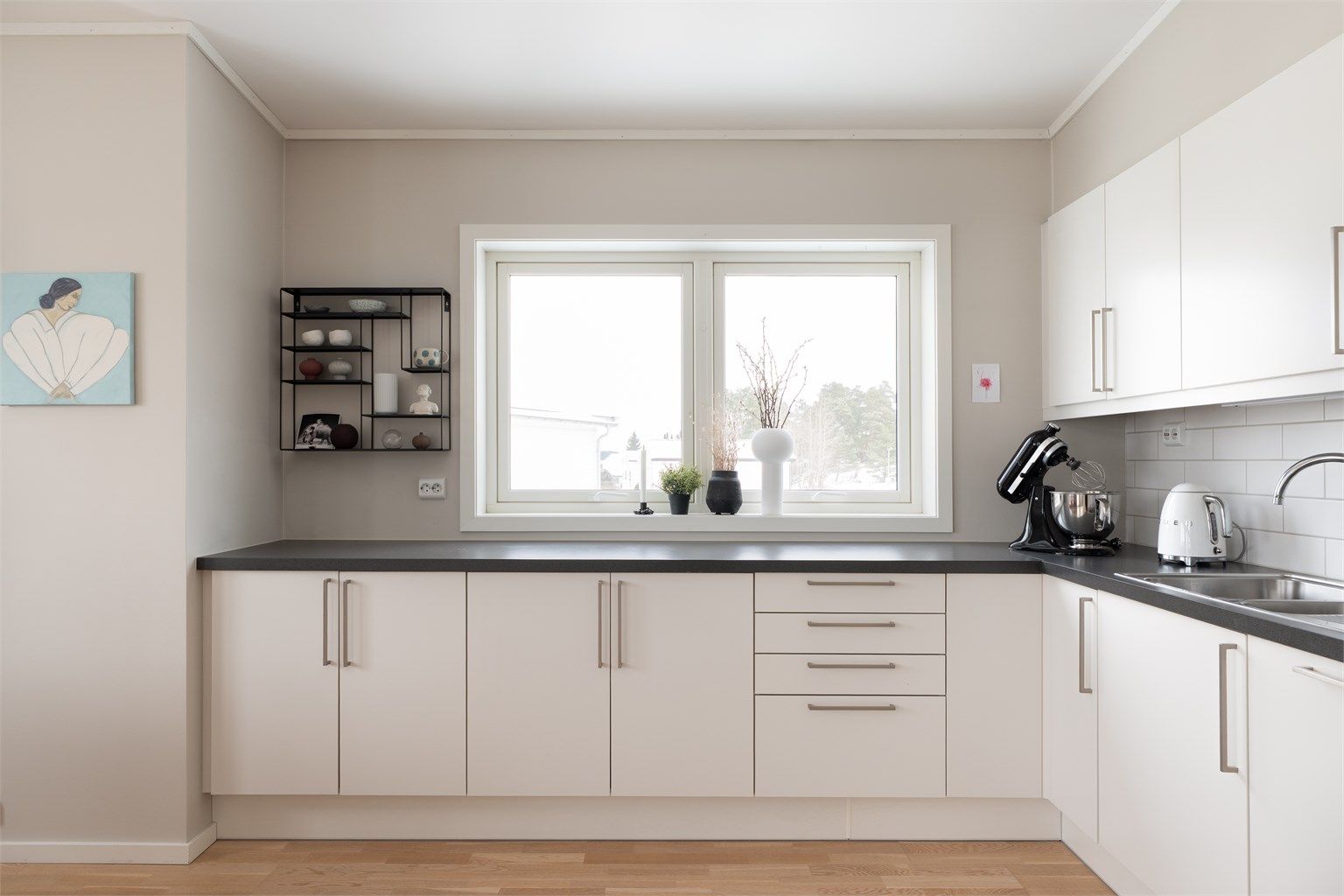 Leiligheten har en nordvestvendt balkong på cirka 9 m² med terrassebord og rekkverk med stående spiler, et hyggelig uterom for kveldssol og utemøbler. Innvendig er det malte himlinger, og vegger samt 3-stavs parkett på gulvene som binder boligen sammen i en moderne, helhetlig stil. Stuen framstår romslig med god takhøyde, mens kjøkkenet er fra HTH med glatte fronter, laminat benkeplate med nedfelt kum, overskap og flisfelt over benk. Integrerte hvitevarer inkluderer oppvaskmaskin, platetopp og stekeovn, og innredningen har praktisk lagringsplass. Badet er flislagt på vegg og gulv med elektrisk gulvvarme, vegghengt toalett, servant i innredning og dusj med svingbare glassdører; det er også opplegg for vaskemaskin. I tillegg finnes et separat toalettrom med vegghengt toalett og servant i innredning.