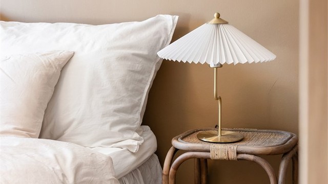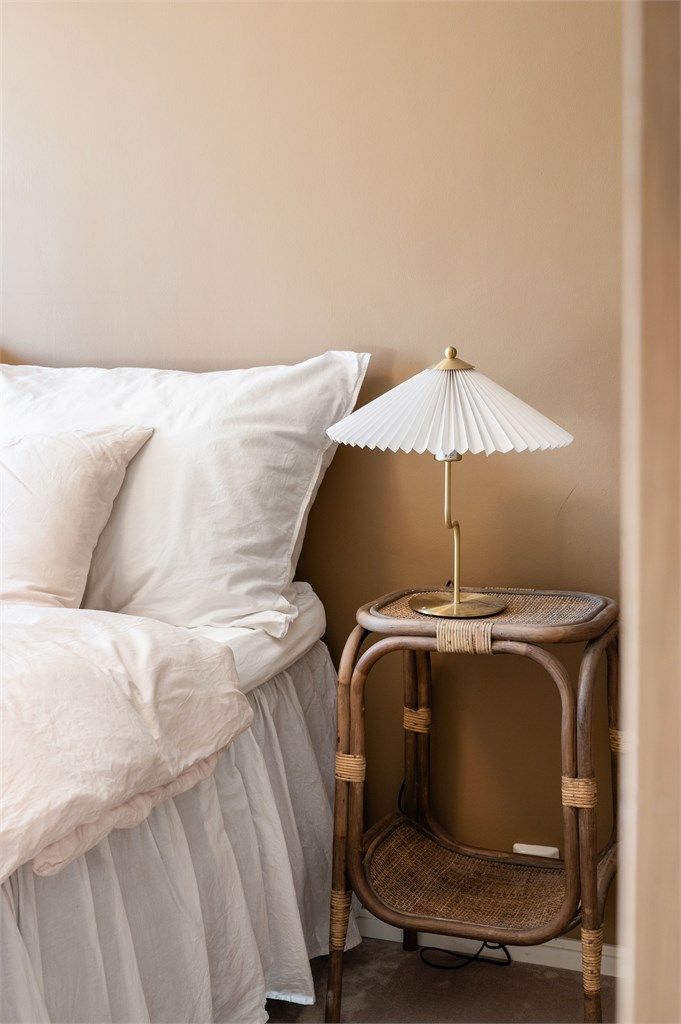 Taklampen over spisebordet medfølger ikke, det samme gjelder lampeskjermen over sengen på soverommet.