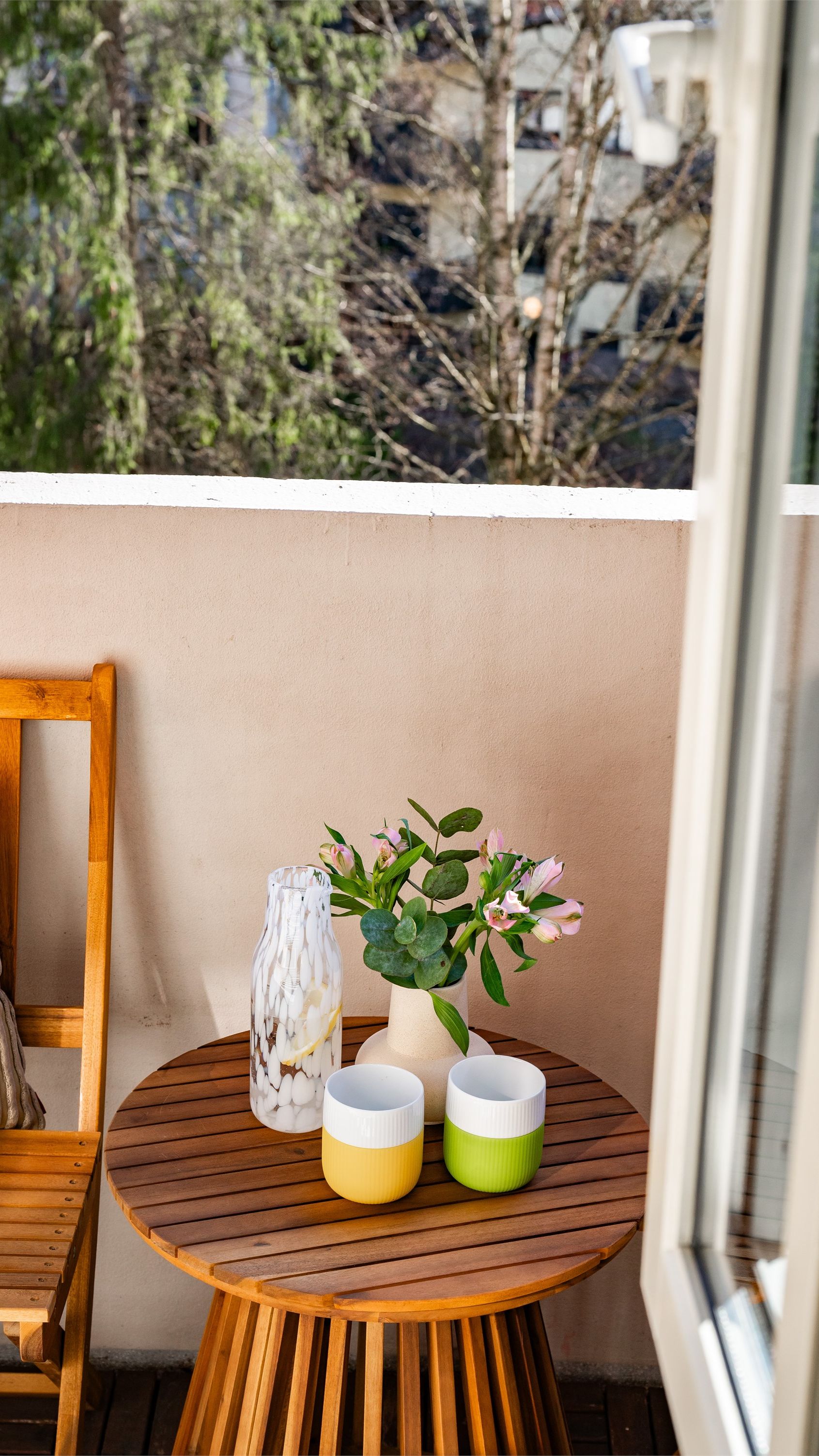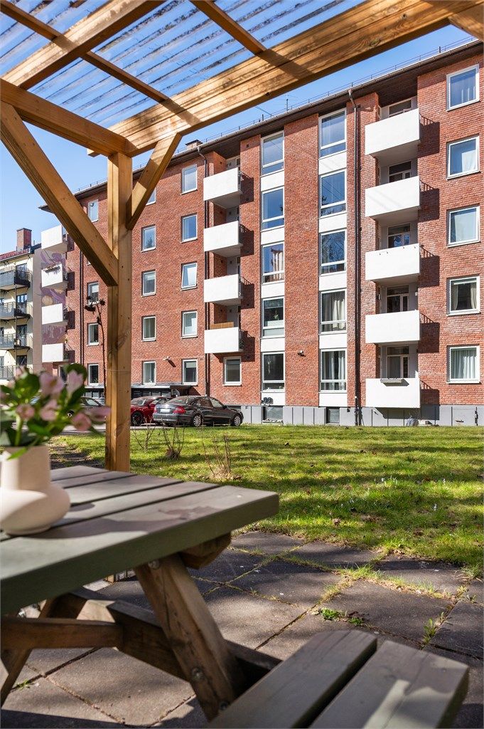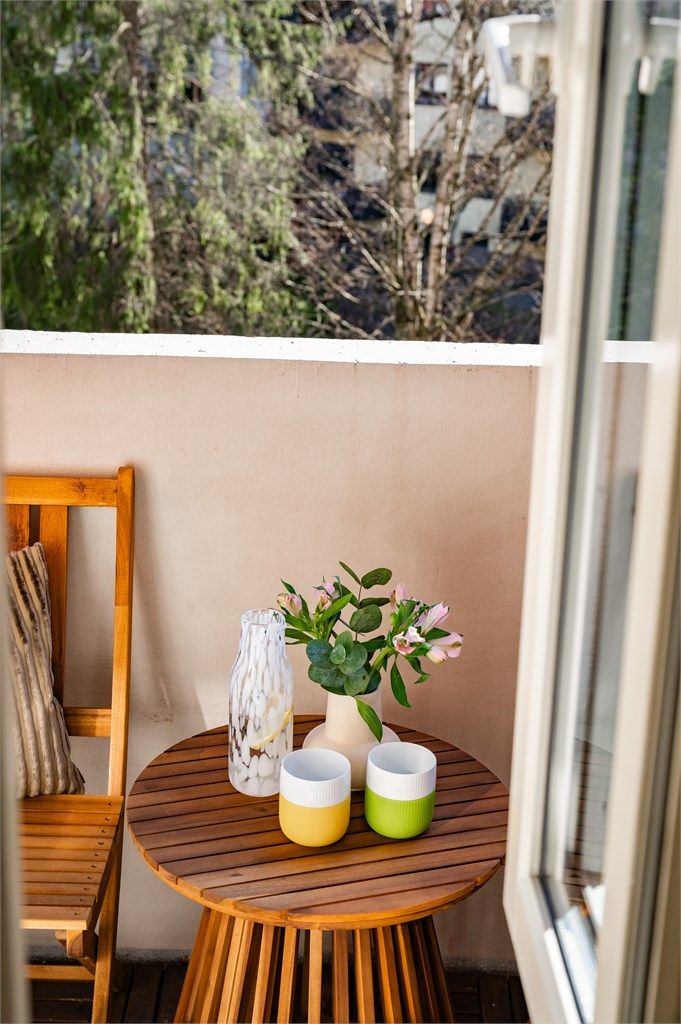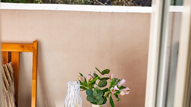 Herlig balkong på ca 3 kvm med sol fra ca. 8 til 13 i sommerhalvåret. Balkongen er rehabilitert i 2020! Her kan man nyte fine sommerdager med idyllisk utsyn mot bakgården.