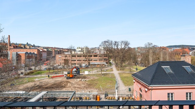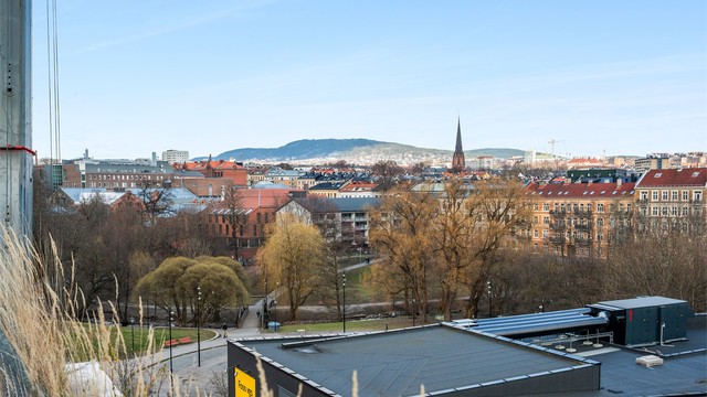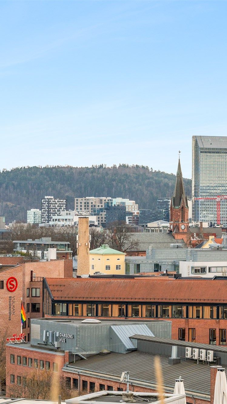 Dette er en moderne 2-roms selveierleilighet i 5. etasje på populære Vulkan. Boligen har en praktisk planløsning og to private uteplasser: en balkong med utgang fra stuen, og en egen, romslig sone på den felles takterrassen. Leiligheten er utstyrt med balansert ventilasjon, men anlegget fungerer ikke og har behov for en fagkyndig gjennomgang.