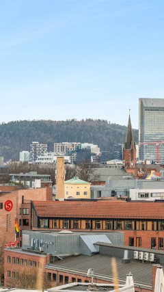 Lys og moderne 2-roms toppleilighet med egen takterrasseparsell | Usjenert balkong med utsikt | Heis | Svært sentralt