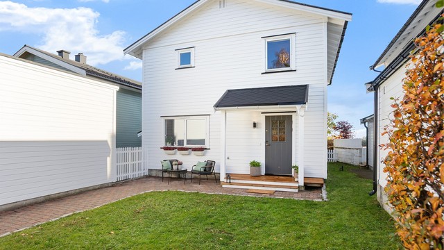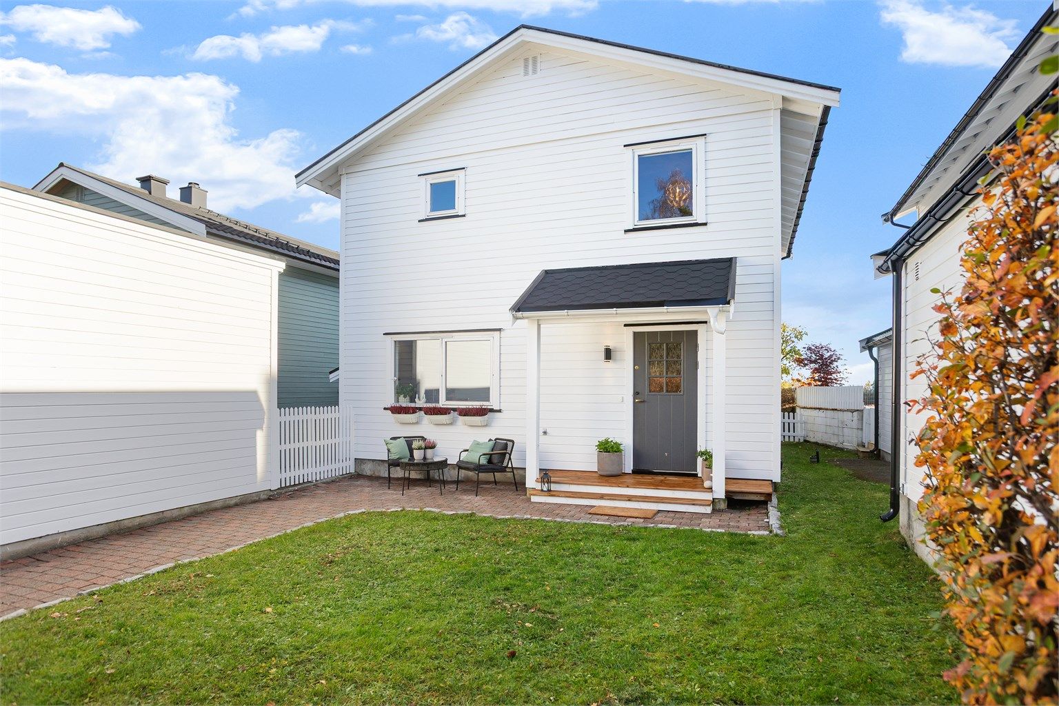 Enebolig beliggende i et etablert og populært område i rolige, barnevennlige og naturskjønne omgivelser på Torp Høymyr. Eiendommen har en attraktiv beliggenhet med gode solforhold, flott utsikt, pent opparbeidet hage, og nærhet til fjorden. Boligen strekker seg over 2 plan har en god planløsning med blant annet åpen løsning mellom kjøkken og stue, 3 soverom, kontor, bad, wc, separat vaskerom, utendørs sportsbod, balkong, samt romslig terrasse med direkte adkomst til privat hage.