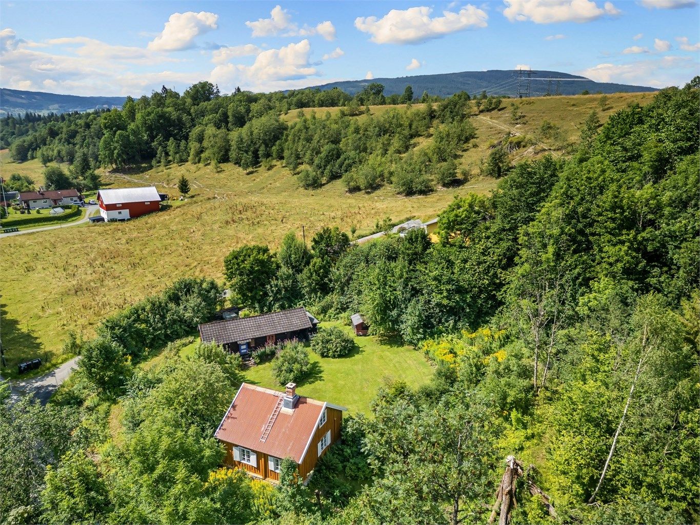 Utvendig trappeadkomst til boligens overbygde inngangsparti i 1. etasje. Tilgang til et frittstående anneks på 45 kvm med utedo, redskapsbod, vedbod, snekkerbod og innredet rom (rommet er ikke godkjent for varig opphold). Overbygget uteplass på ca. 12 kvm, i tilknytning til annekset. Det er også tilgang til en frittstående lekestue.