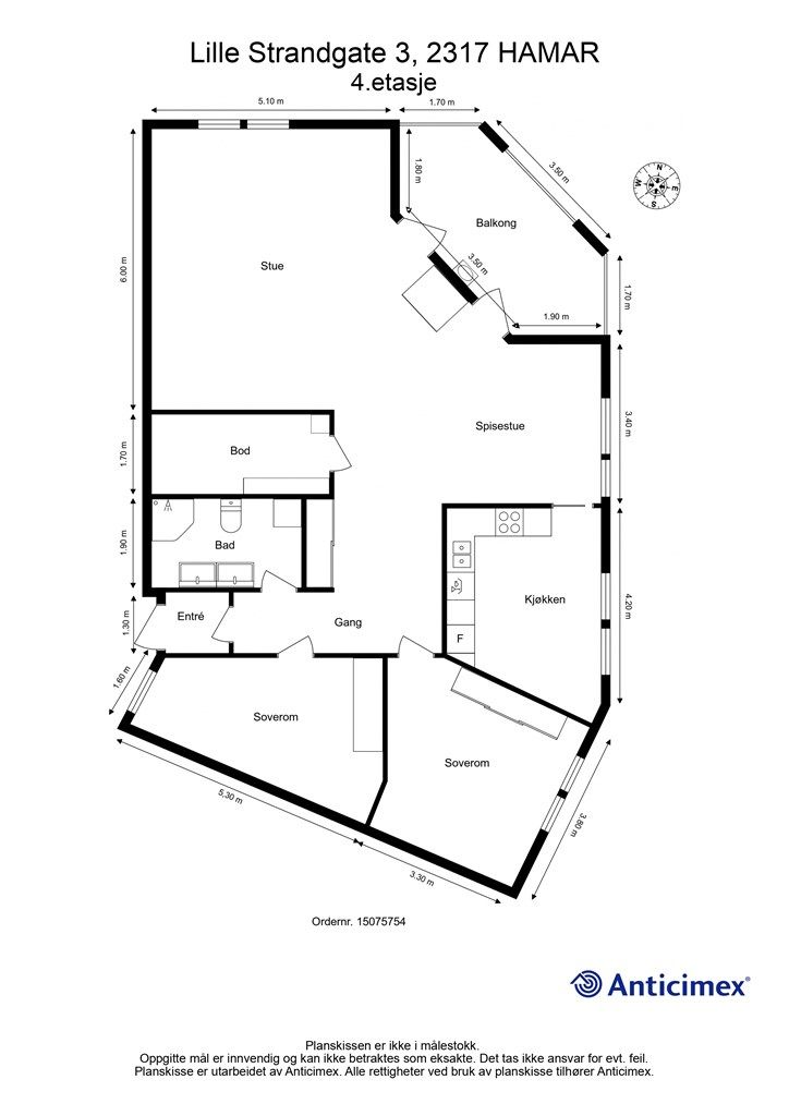 Toppleilighet med lysinnslipp fra hele tre himmelretninger som gir meget fine og naturlige lysforhold i hele boligen. Stue med plass til flere møbleringssoner, peisovn og utgang til overbygd balkong med flott utsyn mot Stortorget, Strandgateparken og Mjøsa. Kjøkken i egen sone med plass til spisegruppe, praktisk bod med plass for oppbevaring og en god soneinndeling med adkomst til soverom og bad fra gang. Sameiet har felles takterrasse med nydelig utsikt over Mjøsa, Hamar by og nærliggende områder. Det medfølger én parkeringsplass i kjeller.