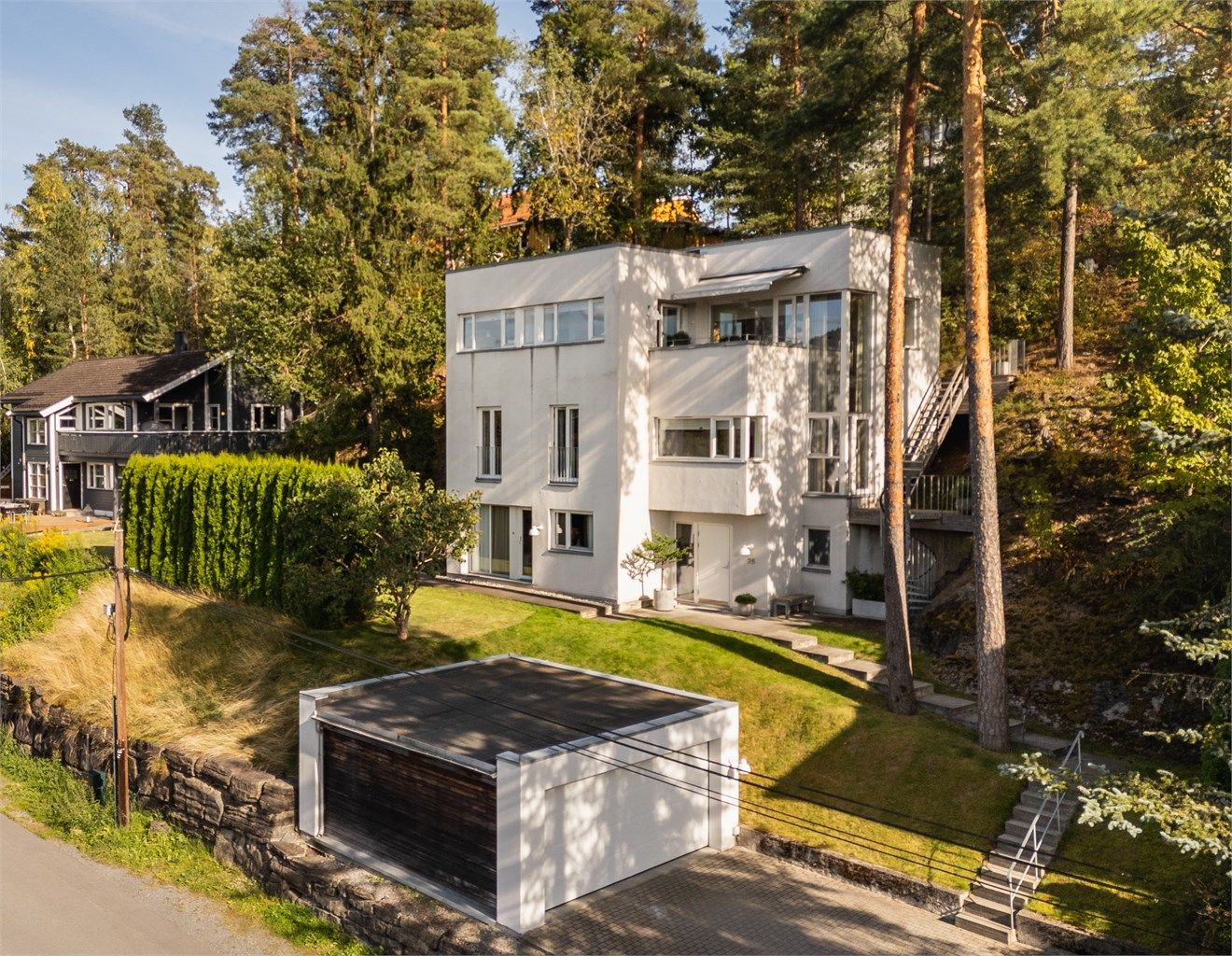 Arkitekttegnet funkisbolig med gjennomført design, flott utsikt og romslige uteplasser. Boligen er fordelt over tre etasjer med flere oppholdsrom, tre soverom, kontor/soverom og tre baderom. I toppetasjen finner man en stor terrasse og balkong på ca. 59 kvm, i tillegg til en mindre terrasse i 1. etasje. Vannbåren gulvvarme og gasspeis gir god komfort. Parkering i dobbelgarasje og på gårdsplass. Eiendommen har en attraktiv og sentral beliggenhet rett ved Sandvika, med korte avstander til barnehager, skoler og flotte rekreasjonsområder. I Sandvika sentrum er det også et bredt utvalg av butikker, servicetilbud, kulturtilbud og svært gode kollektivforbindelser med tog og buss like i nærheten.
