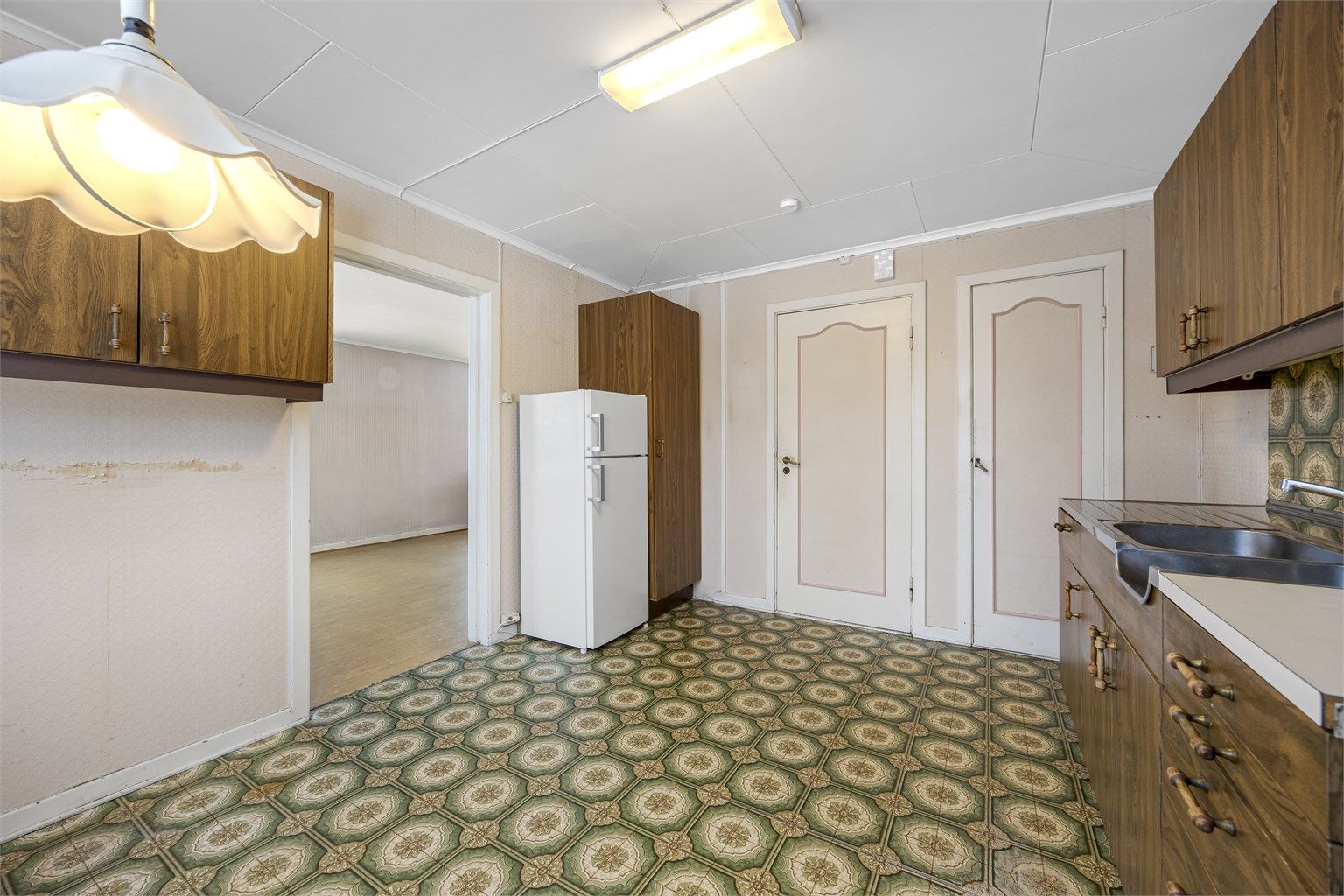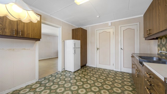 Høydepunkter:Enebolig med stort potensial for den som vil skape sitt eget hjem Tak og utvendig kledning skiftet i 2018 Peisovn i stue Stor, uinnredet kjeller med gode lagringsmuligheter Barnevennlig og sentral beliggenhet på Rykene