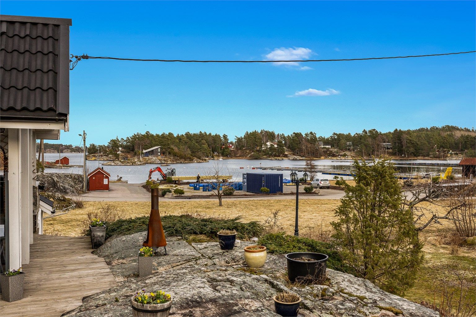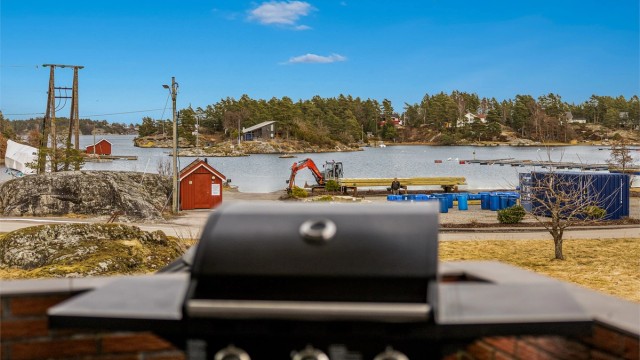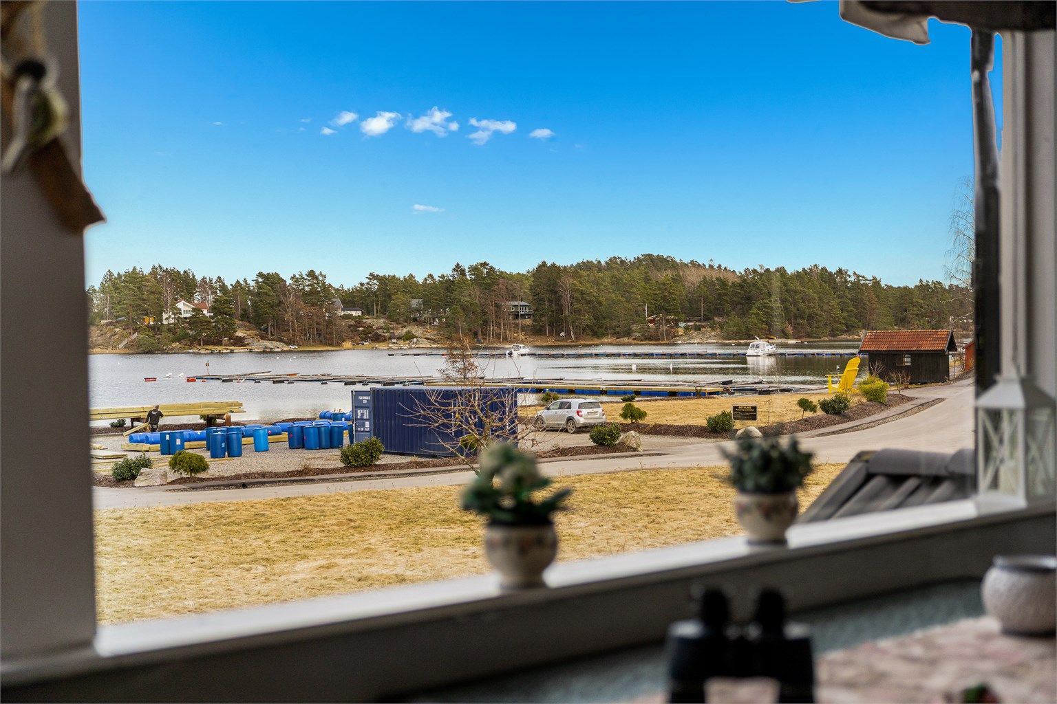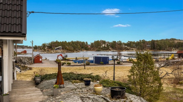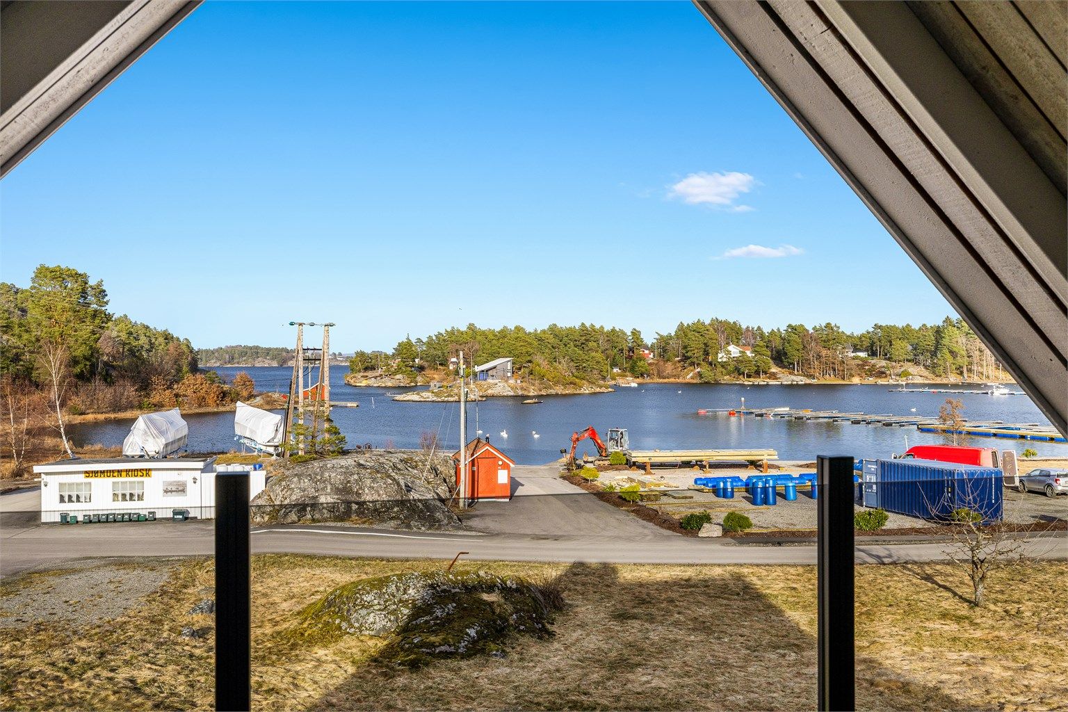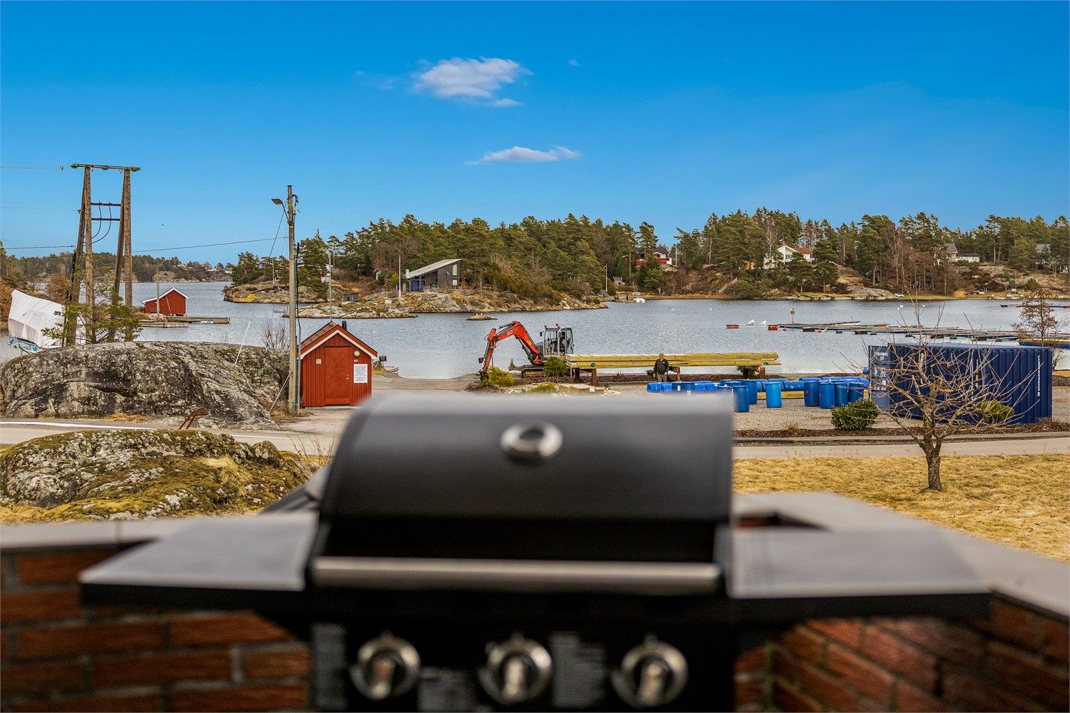 Eiendommen ligger fint ved sjøen på en kolle og har enkel adkomst, store terrasseflater, to uthus og drivhus. Stor dobbel garasje med verkstedbenk, smøregrav og leddport med elektrisk åpner. Selve huset er oppført i 1-1/2 etasje pluss kjeller. Eiendommen har rett til båtfeste. Nærområdet byr på vakker skjærgård og frodig natur.