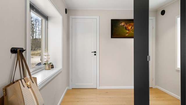 - Boligen har entrédør med brannklasse B30 og lydklasse db40.Terrassedør (skyvedør) med karm/ramme av tre (fra 2019). Vinduer med karmer/ramme av tre (fra 2019).