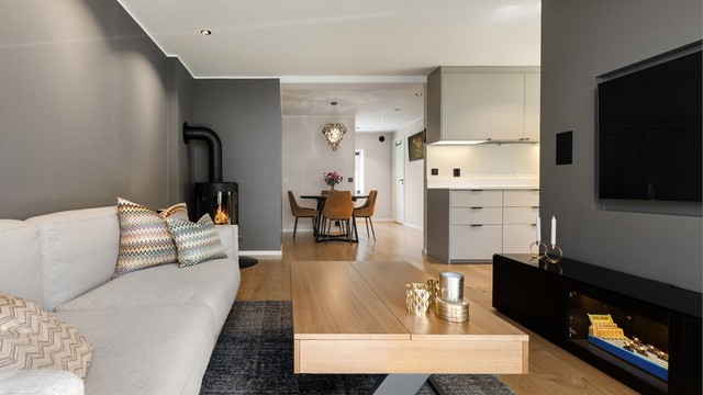 - Oppvarming av boligen skjer i hovedsak ved bruk av gulvvarme/varmekabler i samtlige rom.