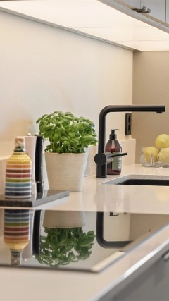Det medfølger styringssystem (Lys, Lyd, Varme / stereo / musikkanlegg) som er skreddersydd for leiligheten med høytalere på bad, stue/kjøkken og terrasse.