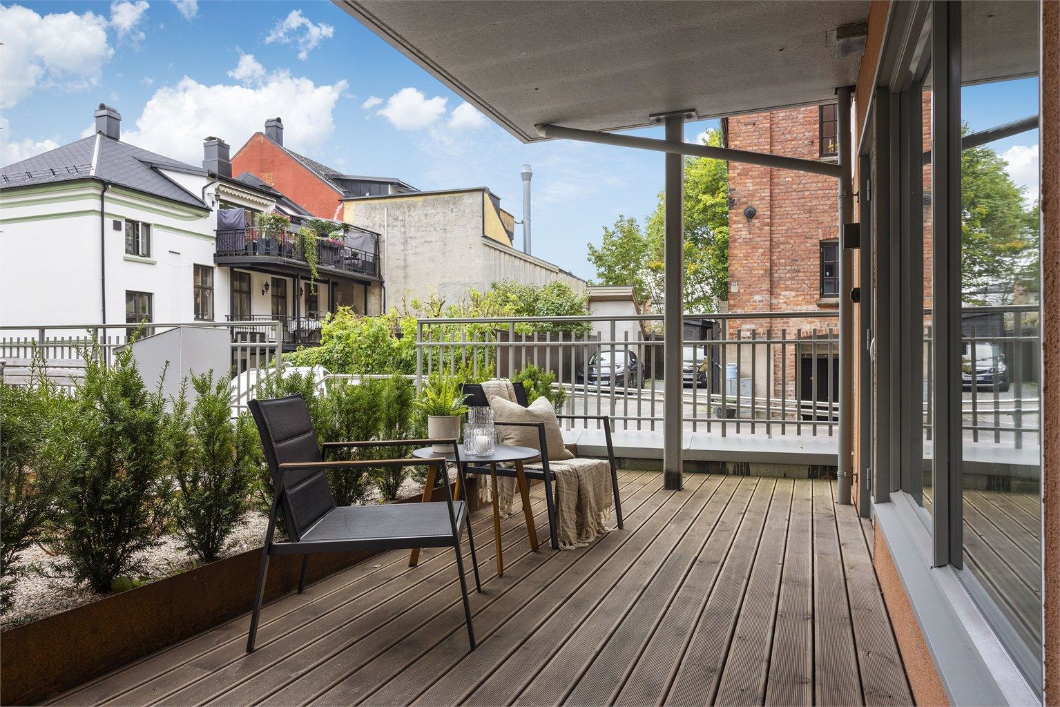 Bak Glassmestergårdens tradisjonelle fasade finner du et skjermet nabolag. Her kan du bo i rolige og moderne omgivelser, med bykjernen i kort gangavstand.