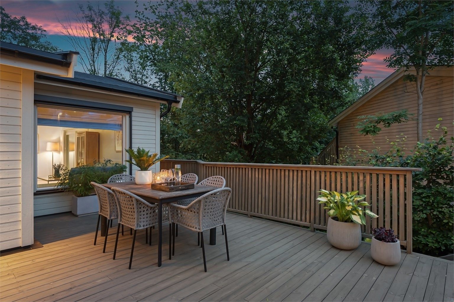 Velkommen til Furulia 62 – et lekkert, påbygget enderekkehus med rolig og skjermet beliggenhet i et bilfritt og barnevennlig boligområde rett ved Haslum skole! Her bor du i grønne omgivelser, med turstier, bekk og fugleliv rett utenfor hagen – og samtidig kort vei til barnehage, kollektivtransport og Bekkestua. Boligen er smakfullt oppusset og påbygget, med moderne løsninger, store vindusflater og nydelige uteplasser. Her er det lett å trives!