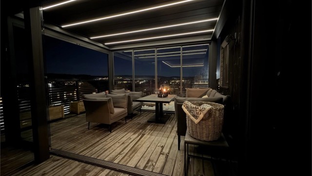 - Pergolux, 2 stk pergolaer med lys og skjerming (kr. 201.707,-). Pergoalene kan justeres via fjernkontroll.
