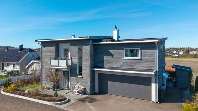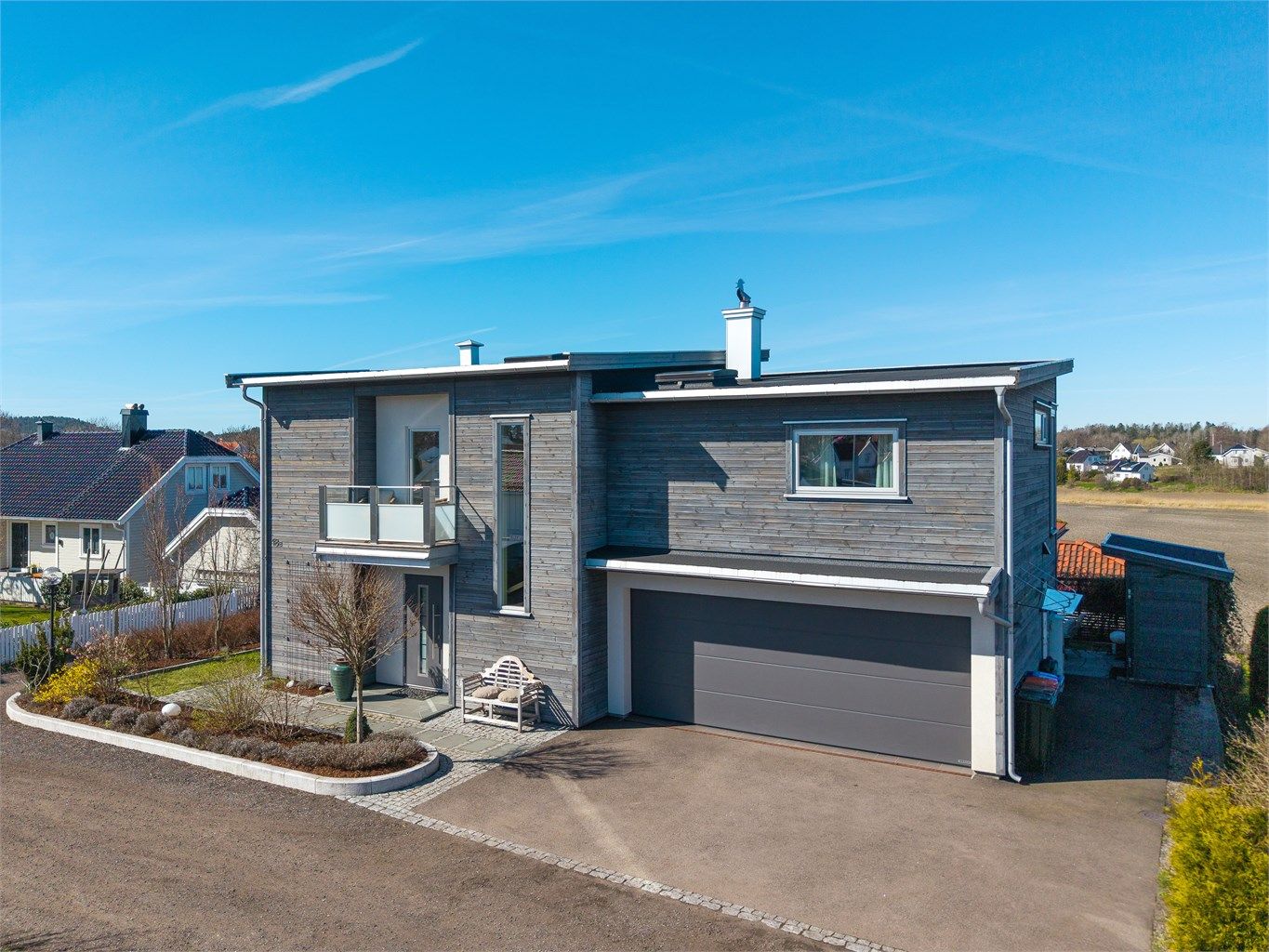 Velkommen til en moderne og arkitektonisk gjennomført enebolig med høy standard, rene linjer og et kompromissløst uttrykk. Boligen ligger rolig og attraktivt til, med optimale solforhold og en vidstrakt utsikt som gir en sjelden følelse av rom, lys og frihet.