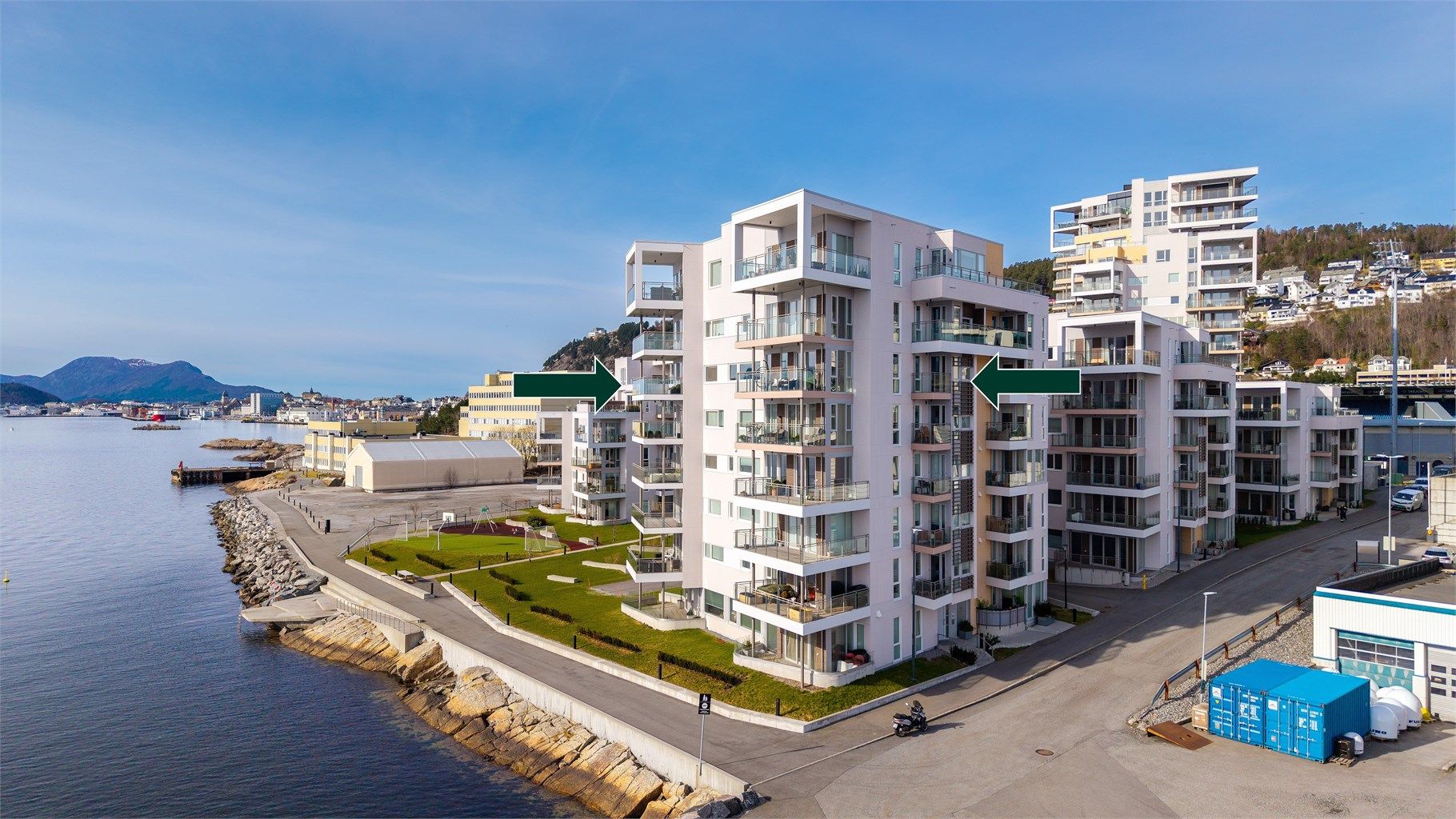 Nyere lekker 4-roms eierleilighet beliggende i 6. etasje med sjøfront og nydelig utsikt mot fjord og fjell. Leiligheten har påkostet standard og fremstår lys og tiltalende. Gode solforhold.