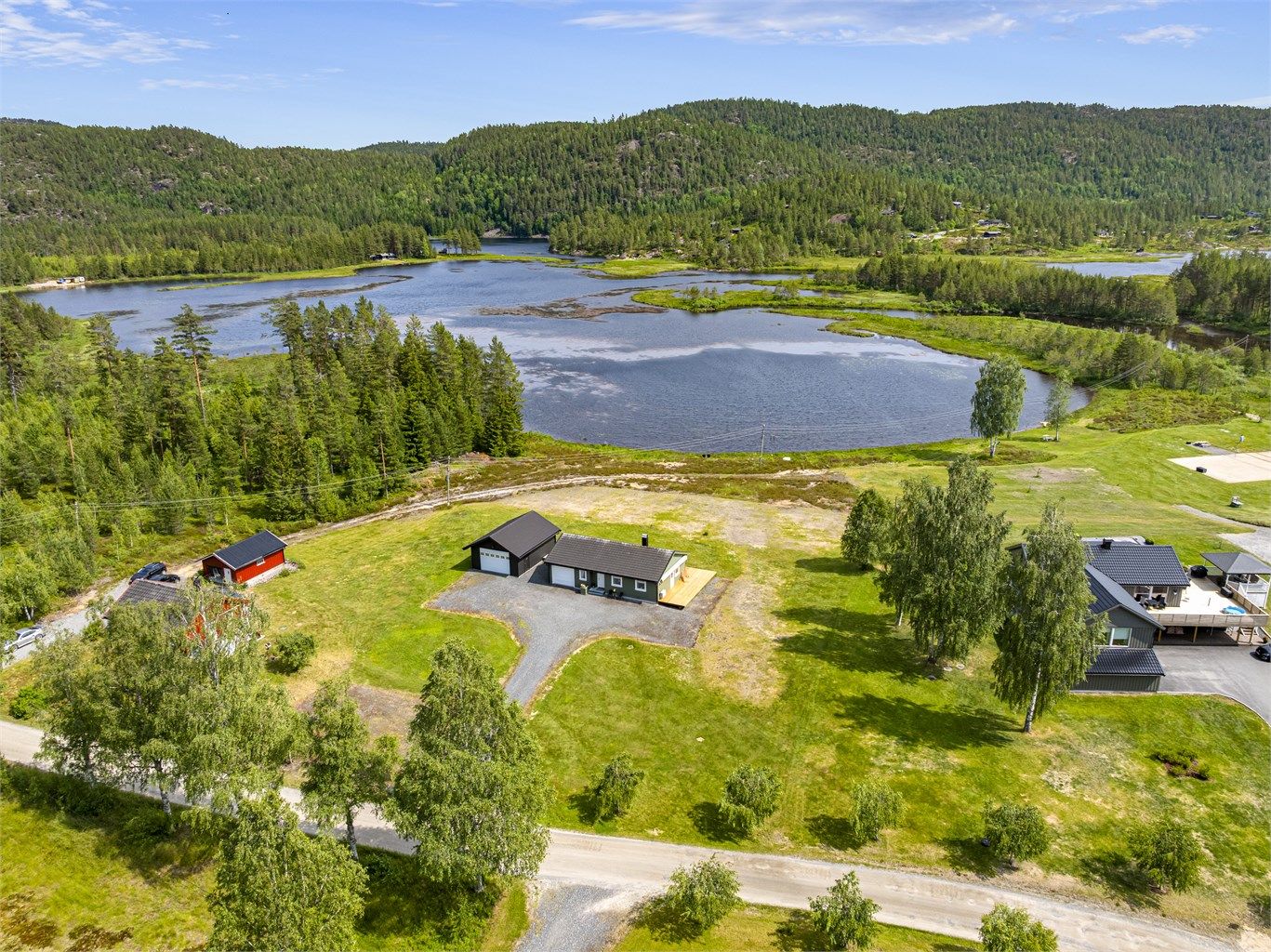 Her kan man overta en velholdt enebolig fra 2006 med vakker utsikt til Lundevann! Eiendommen ligger fint til på flat mark, med god avstand til naboer og vannet. Det meste av møbler, inventar og utstyr følger med i handelen. Det er helt nye hvitevarer fra 2024 (ikke oppvaskmaskin). Eier har malt og pyntet flott opp rundt huset, samt hatt service på vannpumpen og kjøpt inn utstyr og hvitevarer. Det er en flat og lettstelt tomt med robotgressklipper som også medfølger. Garasjen har ekstra høy port og har god plass. Boligen inneholder Boligen inneholder vindfang, gang, stue, kjøkken, to soverom, baderom og vaskerom, samt integrert garasje med muligheter for omgjøring til soverom. Det er varmepumpe og vedovn i boligen, samt varmekabler i gulv på bad. Velkommen til Valle i Gjerstad!