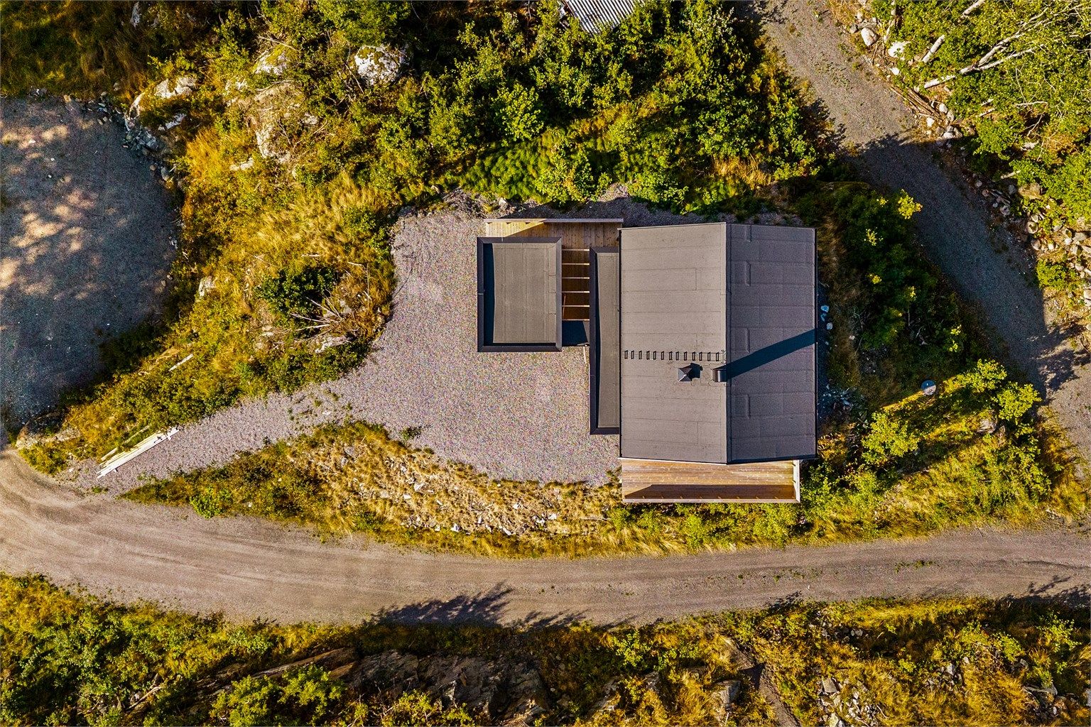 Eiet tomt på 901 kvm. Tomten er opparbeidet med gruset adkomst og terrasser i trevirke.