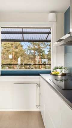 - Ny kjøkkenløsning med innredning, laminert benkeplate, integrerte hvitevarer, komfyrvakt, rør-i-rør system og automatisk lekkasjesikring.