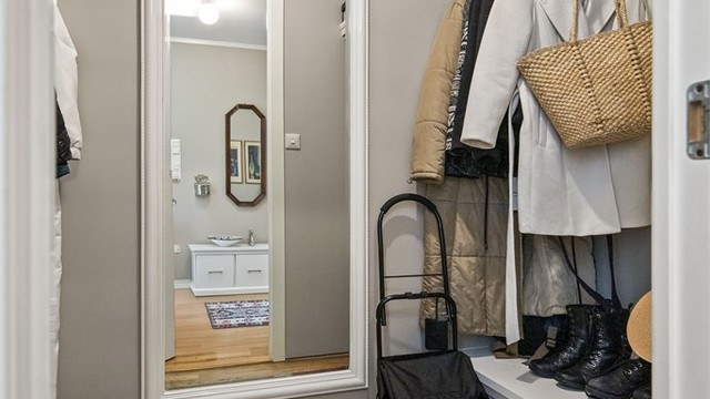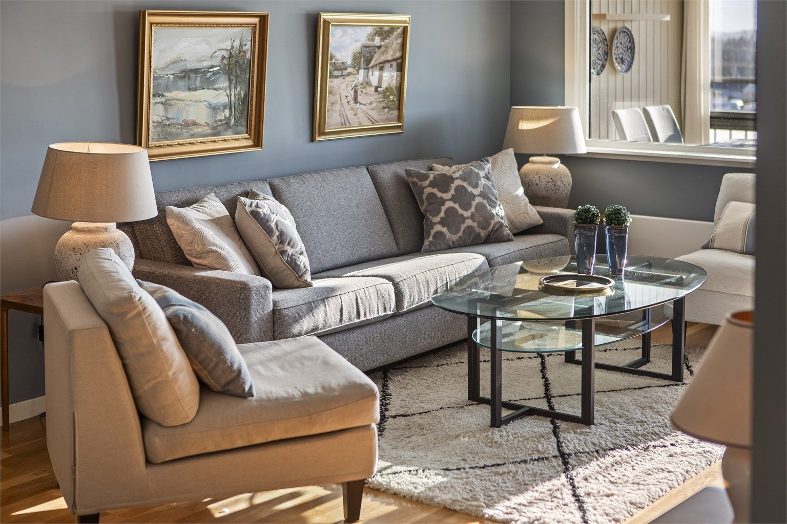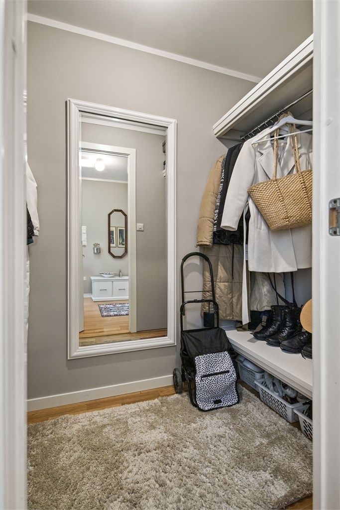 Soverommet er romslig og har praktisk skyvedørsgarderobe, men det finnes også gode lagringsmuligheter både i innvendig bod og i kjellerbod. Dette er en leilighet som kombinerer funksjonalitet med lys, luft og trivsel. Her kan du flytte rett inn.