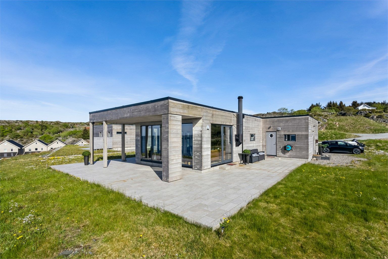 AUSTEVOLL | Rålekker funkishytte fra 2014 | Spektakulær sjøutsikt og meget gode solforhold | Medfølger båtplass i marina