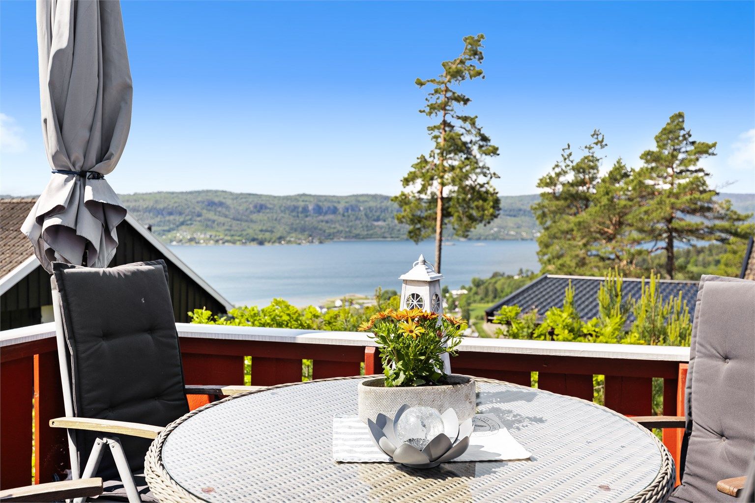Terrassene har gode solforhold og flott utsikt fra høyden mot sjøen