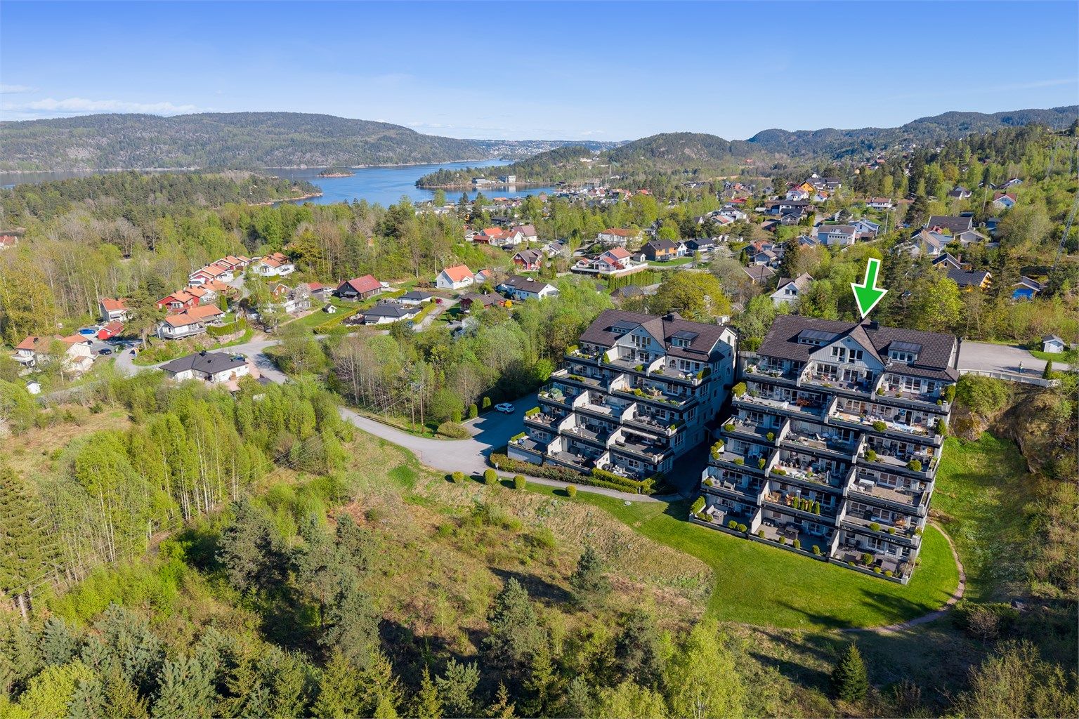Lys og romslig leilighet over to plan beliggende i øverste etasje. Flott første etasje med åpen løsning mellom kjøkken og stue. Her har du direkte utgang til stor og flott terrasse på ca. 38 kvm med meget gode solforhold. I andre etasje har du 2 soverom, 1 bad og tv-stue/soverom. Boligen har store vindusflater som sørger for mye naturlig lys inn. Leiligheten er beliggende rolige omgivelser med kort vei til Sætre sentrum med butikker og serveringssteder. I gangavstand har du Skogsborg som er et fantastisk sted å tilbringe sommeren, med strand og yrende liv.