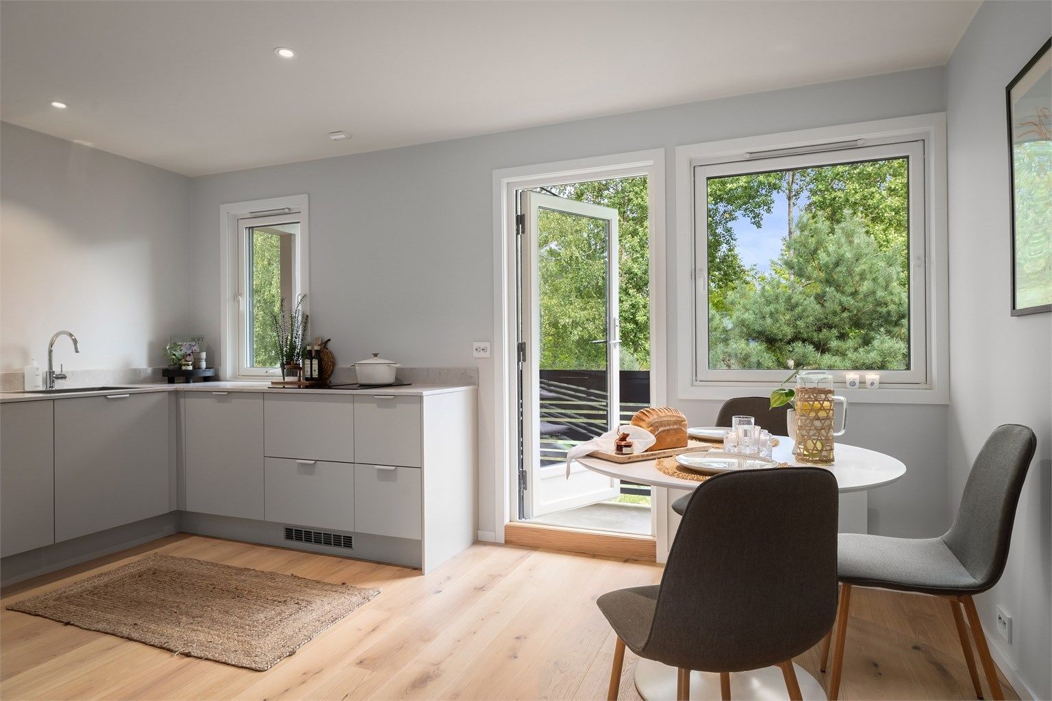 Eiendomsmegler Krogsveen ved Jan Robert Ottesen har gleden av å presentere Ivar Knutsons vei 19 – en sjeldent gjennomført og moderne terrasseleilighet med adkomst via en lett trapp til 3. etasje. Boligen ble profesjonelt oppusset i 2025 og fremstår med høy standard. Fra stuen er det direkte utgang til en vestvendt terrasse på 13 kvm med gode solforhold og flott utsikt. Her kan du flytte rett inn uten å bekymre deg for vedlikehold de neste årene!
